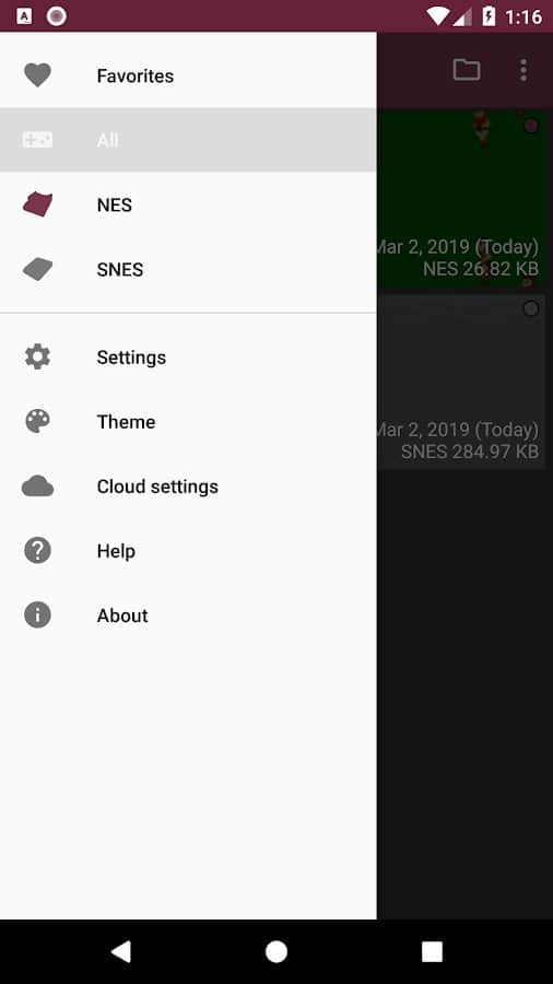 John GBAC - эмулятор игр для приставок SNES и NES на Android. В приложении имеется поддержка чит-кодов и даже ускорение и замедление эмуляции. Это позволит вам немного схитрить, если вы не можете пройти какой-либо уровень в игре. Чтобы удобнее играть на телефоне есть поддержка различных геймпадов. А синхронизация с сервисом Dropbox позволит сохранять прохождение игр и продолжать их на любом совместимом устройстве.