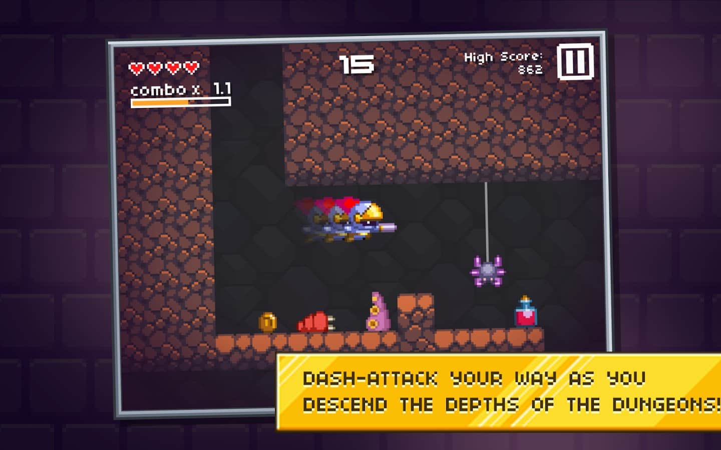 Студия разработчик Noodlecake хорошо известна владельцам мобильных платформ благодаря отличным аркадным играм в числе которых такие хиты как Random Heroes, Zombie Road Trip и Alto's Adventure и это далеко не все. И вот, буквально на днях Noodlecake порадовала нас своим новым проектом под названием Journey Below который представляет из себя некий микс между авто-ранером и платформером, а сюжетная линия закручивается вокруг отважного рыцаря который спустился в пещеры для того чтобы уничтожить монстра и тем самым спасти мир. Управление в игре предельно просто, вам предстоит лишь прыгать и атаковать, а двигаться персонаж будет автоматически.