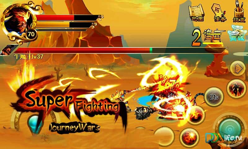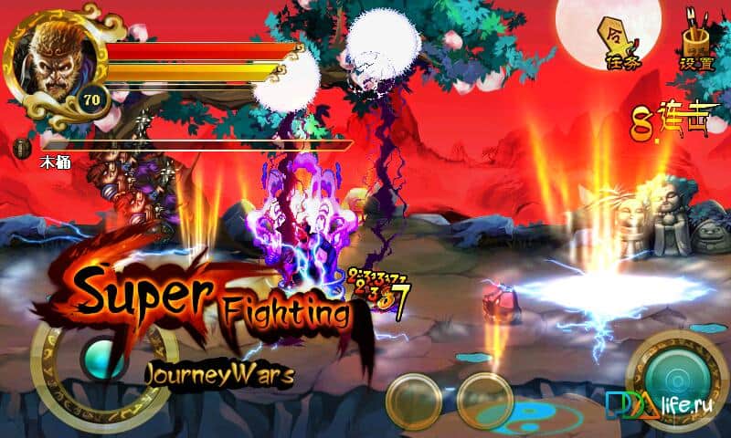 Journey Wars _ Super Fighting - отличный файтинг для андроид. Великий воин Сунь Укун вышел на тропу войны с врагами и темными силами. Игра изобилует возможностями и пожалуй удовлетворит даже самого придирчивого геймера: