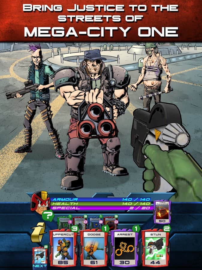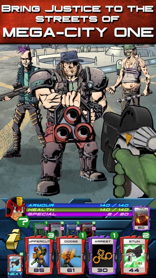 Judge Dredd: Crime Files - пошаговая стратегия на Android, в которой вы окажетесь в роли всемирно известного лучшего Судьи Мега-сити - Судьи Дредда. Пройдите новые истории, основанные по мотивам оригинальных комиксов. Вам предстоит остановить преступность в вашем городе используя для этого все возможные методы. Отправляйтесь в патрулирование и сражайтесь со старыми и новыми врагами, принося справедливость на улицы Мега-Сити. Вы и есть закон.