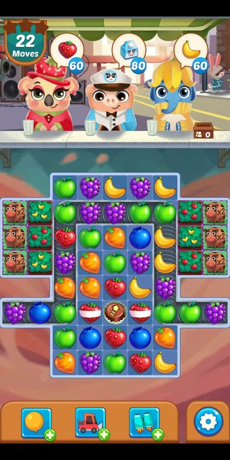 Juice Jam – головоломка на андроид, по собиранию одинаковых фруктов в ряд, и получения из них вкусного фреша. Это увлекательная игра, в которой вам предстоит путем нехитрых действий собирать воедино одинаковые фрукты и делать из них соки для своих персонажей. Каждый желающий выпить вкусного сока имеет свой цвет, и чтобы налить ему сока вам придется собрать на поле фрукты такого же цвета. В этой игре вас ждут многочисленные уровни с десятками красочных земель и боссы, которых вам предстоит обхитрить и выполнить все заказы по разливанию сока. Собирайте замечательные бонусы и открывайте для себя новые способы возможности играть в игру «три в ряд».