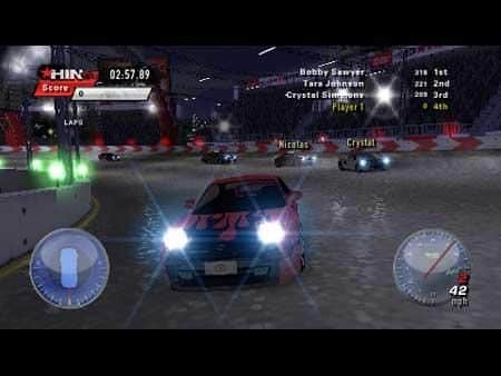 На эмуляторе с этой игрой имеются проблемы с освещением(блики от уличных фонарей, фар и огоньков на ограждениях,отпечатываются пятнами на экране.) А так игра неплохая. Однако, всё таки, посоветую поиграть в juiced elimination. Там более сложная и интересная физика, более разнообразный геймплей и клевая система ставок. Да и вообще, игра является полноценным портом ПК версии первой части juiced.