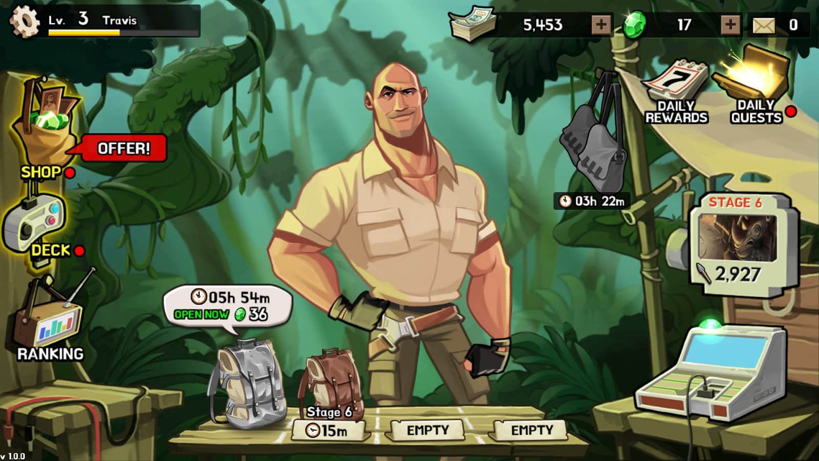 JUMANJI: THE MOBILE GAME – карточная стратегия созданная по мотивам одноимённого фильма. Соберите свою неповторимую колоду, с уникальными навыками и начинайте невероятно увлекательное приключение в поискам Джуманджи! В игре вы встетитесь с такими героями фильма как: Джуманджи, доктором Брэйвстоун, профессором Обертоном, Руби Раундхаусом и Мусом Финбаром. Увлекательные PvP сражения против реальных игроков даст вам возможность побороться за владениями территорий джунглей. Соберите идеальную колоду карт и дайте отпер новым игрокам. Игра идеальна для игры с друзьями.