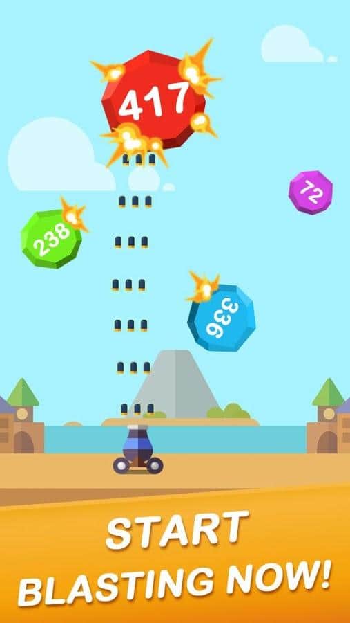 Jump Ball Blast – экшен на андроид, где вы будете вести бесконечный огонь по противникам. Нажимайте на экран своего телефона или планшета и заставляйте пушку перемещаться по экрану и вести огонь по шарам, которые имеют разное значение. Числа на шарах означают сколько раз вы должны по ним попасть. Стреляйте из всех орудий и набирайте очки, которые вы сможете потратить на открытие новых видом оружия. Применяйте разрушительное оружие и не дайте противникам не единого шанса на спасение. Играйте в эту игру в любое время и тренируйте скорость своих пальцев.