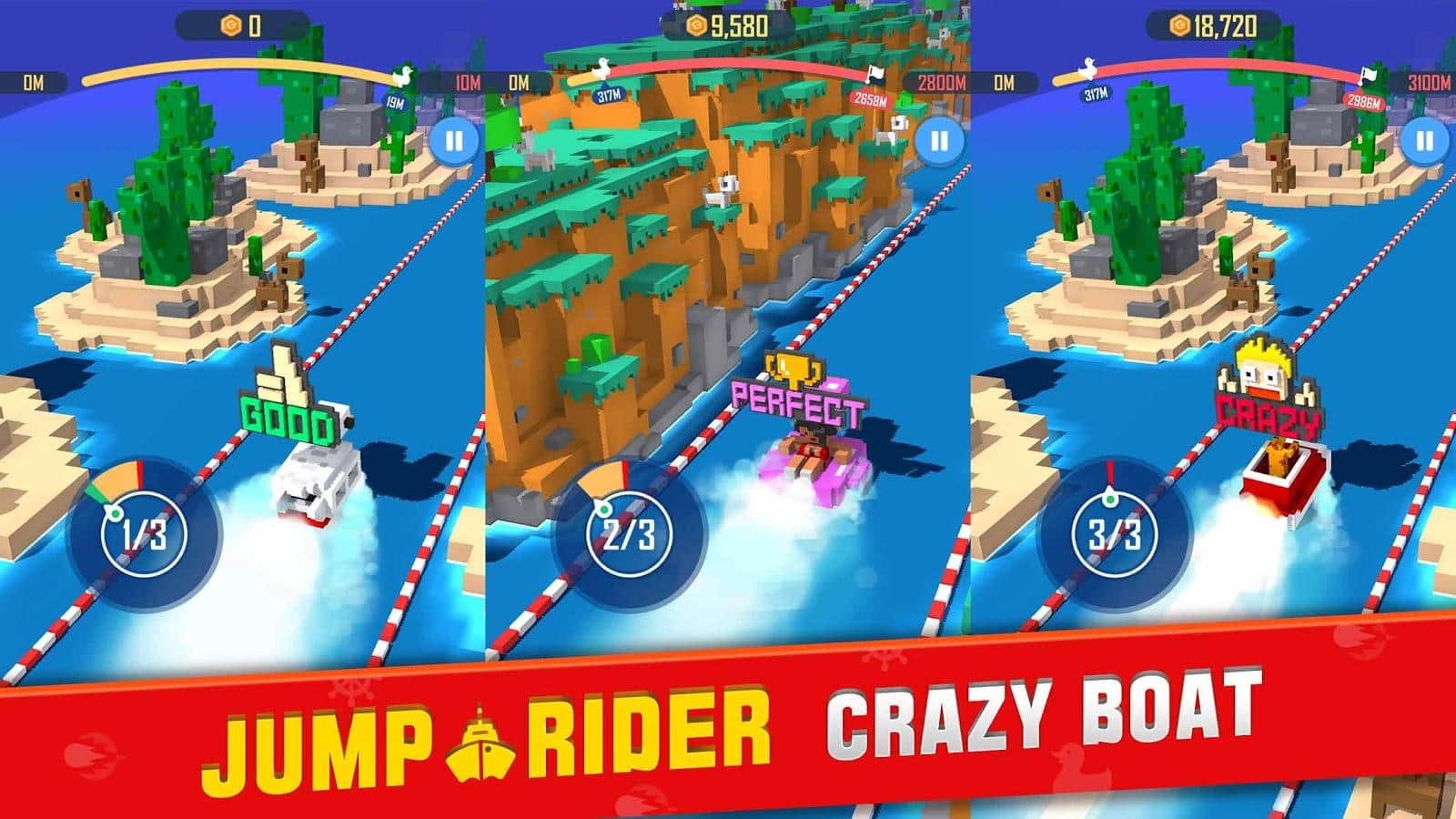 Jump Rider: Crazy Boat - забавная и увлекательная аркада в которой вам необходимо постараться преодолеть максимально возможное расстояние по реке, но для начала вам необходимо построить достаточно надежное плав средство. По мере установления новых рекордов вы будете получать деньги и очки которые сможете потратить на модернизацию лодки. Подобное сочетание аркады и инженерного симулятора придадут геймплею необычности.