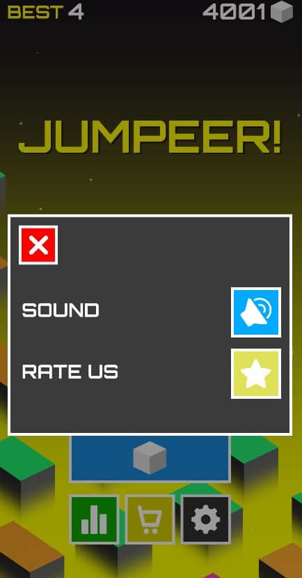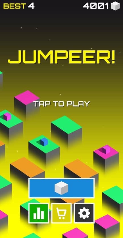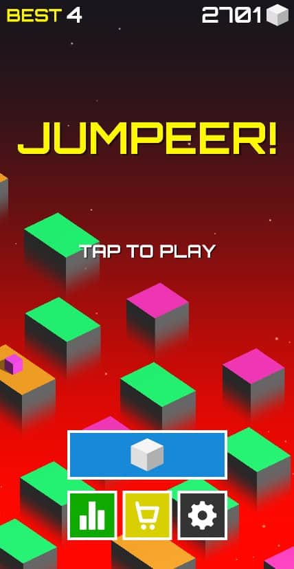 Jumpeer! - просто кликайте одним пальцем по экрану и перемещайтесь с кирпичика на кирпичик, продержитесь не упав максимально долго. Ставьте новые рекорды, выработайте свой собственный ритм и следуйте ему не пропуская ни одного кирпичика. В игре присутствуют простенькие эффекты, возможность выбора фона, а также новые скины. Заходите в магазин и покупайте понравившиеся скины для вашего прыгуна. Добывайте алмазы и бейте собственные рекорды, хвастайтесь своими достижениями с друзьями и соревнуйтесь кто дольше продержится!