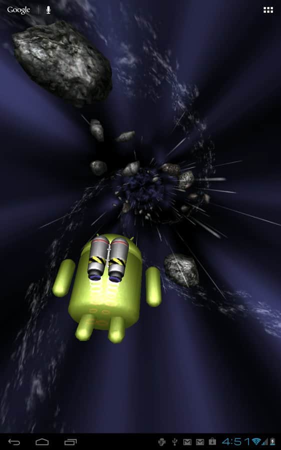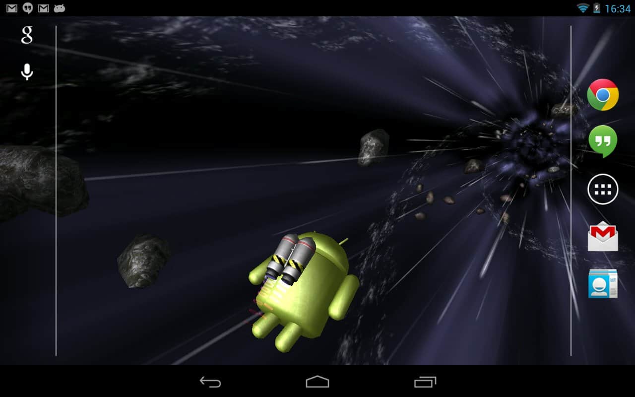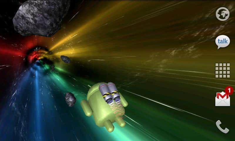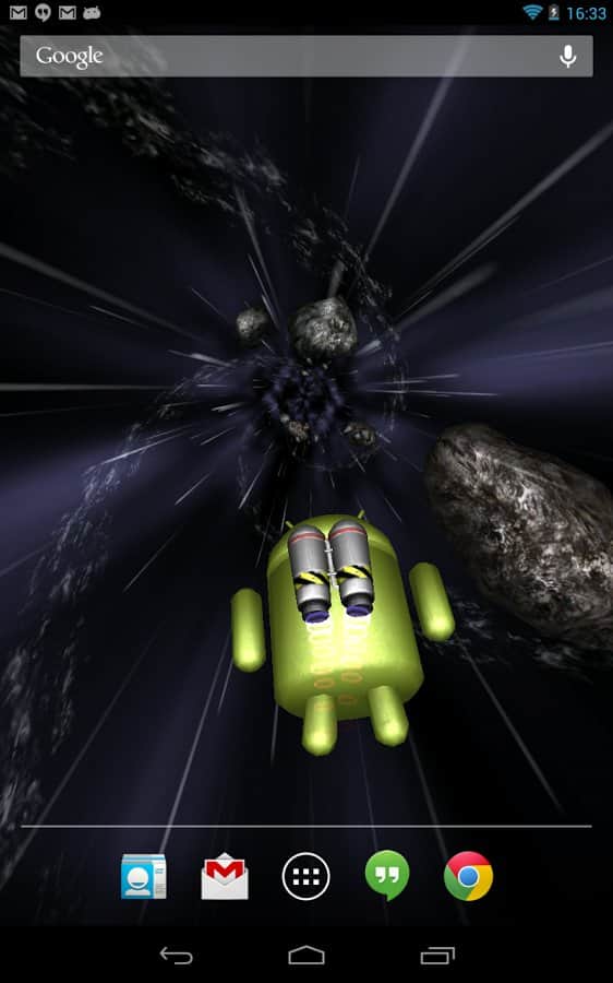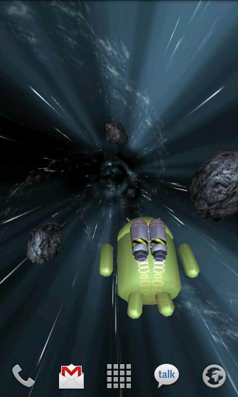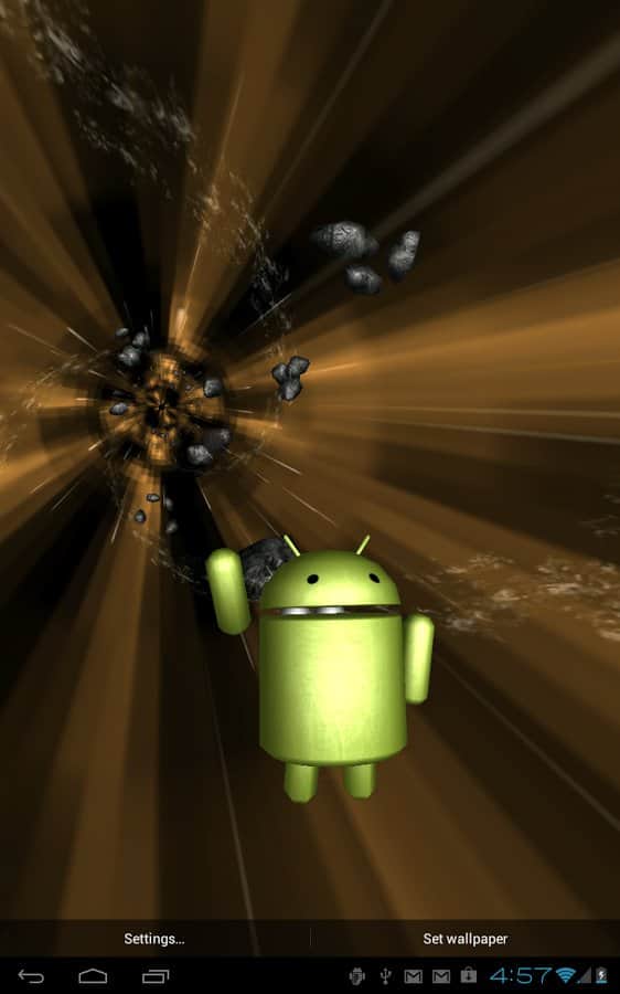 Jumpgate Live Wallpaper – прикольные живые обои для андроид смартфонов и планшетов с анроид-персонажем, бороздящим космическое пространство, благодаря реактивному ранцу за его плечами. Тапните по нему два раза и он поздоровается с вами. По пути ваш друг будет встречать астероиды и звезды. Его путь далек и бесконечен. Прикольно, красиво и завораживающе.