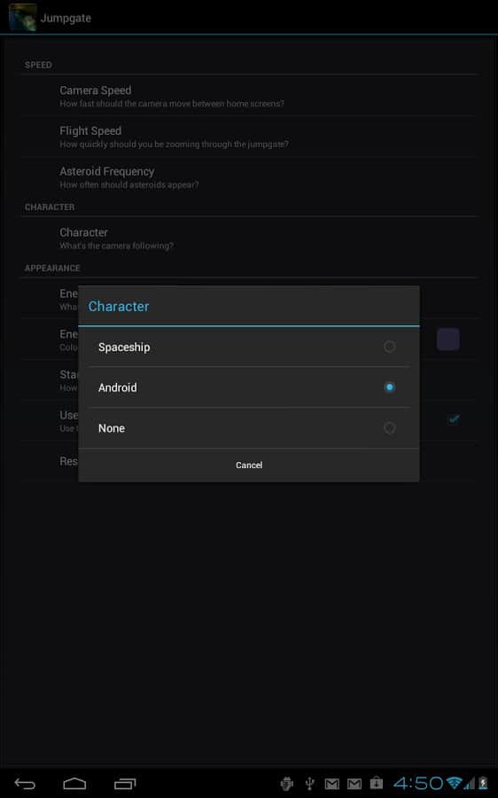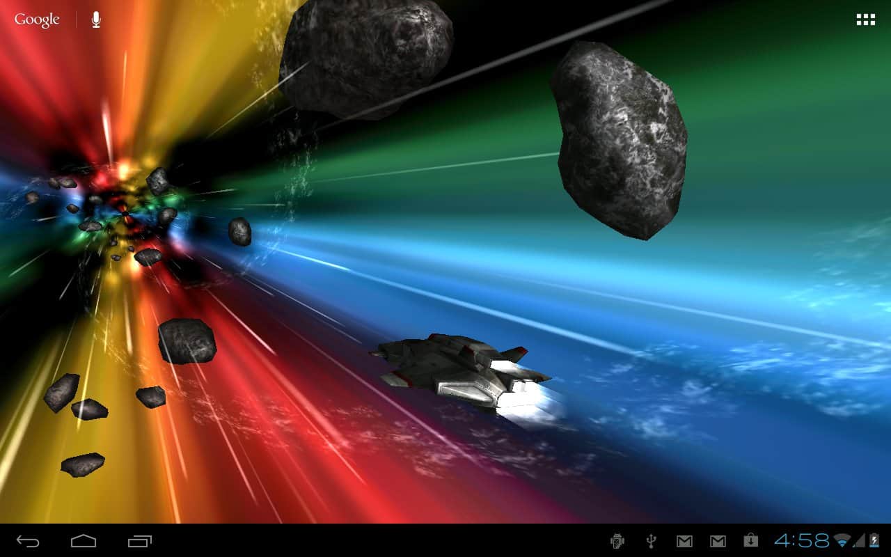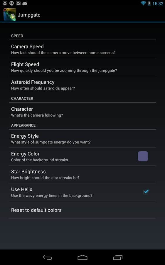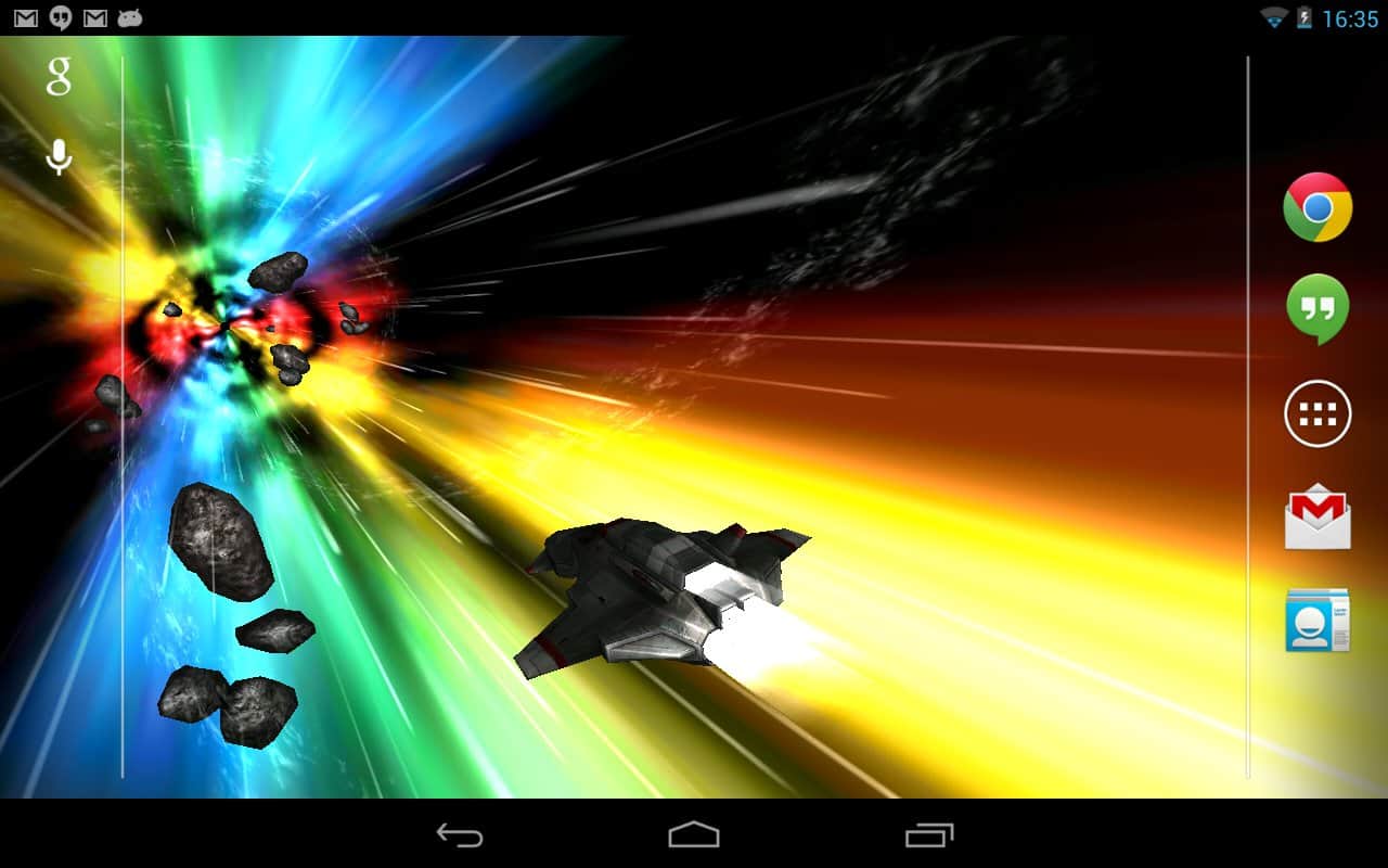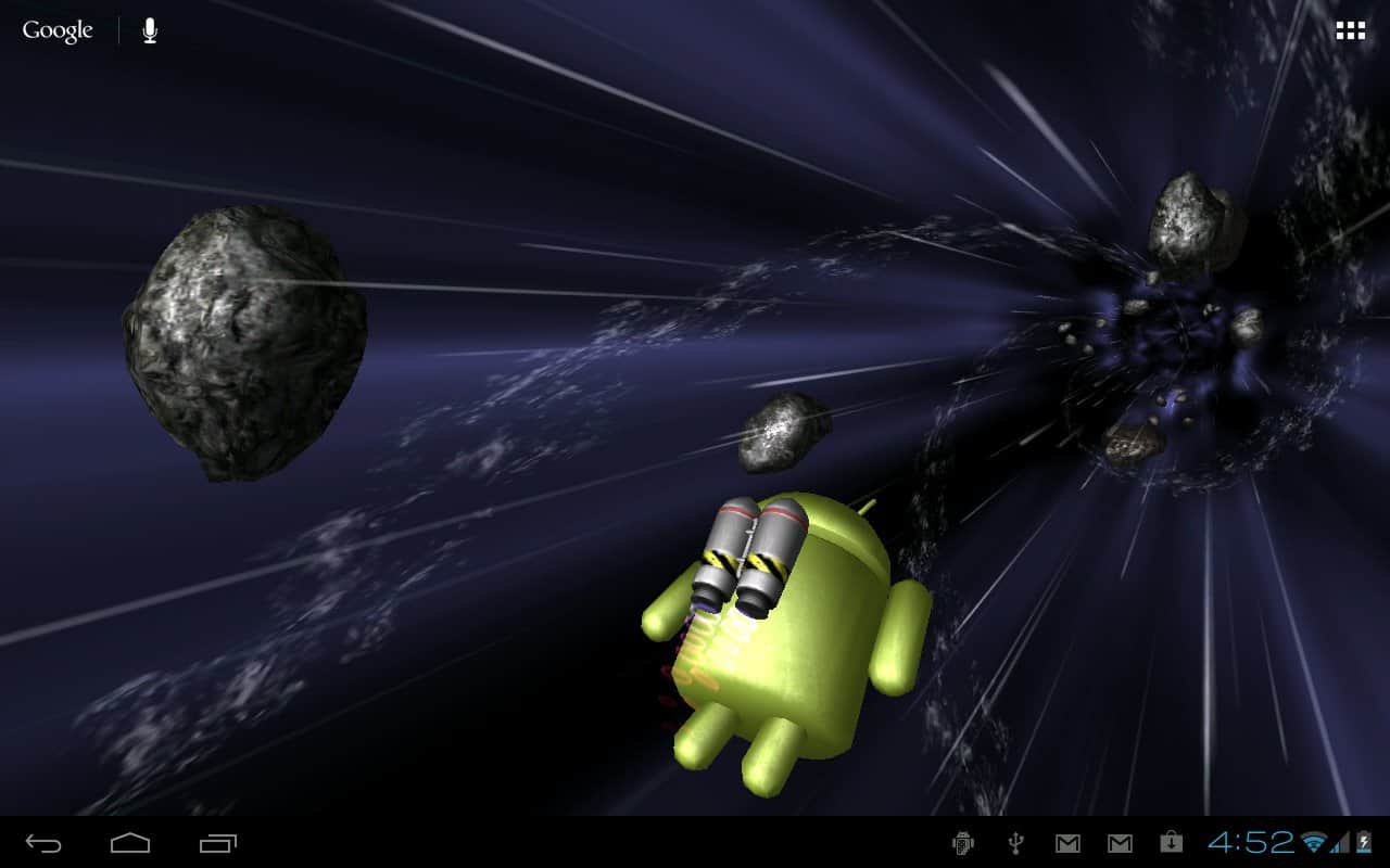 Jumpgate Live Wallpaper – прикольные живые обои для андроид смартфонов и планшетов с анроид-персонажем, бороздящим космическое пространство, благодаря реактивному ранцу за его плечами. Тапните по нему два раза и он поздоровается с вами. По пути ваш друг будет встречать астероиды и звезды. Его путь далек и бесконечен. Прикольно, красиво и завораживающе.