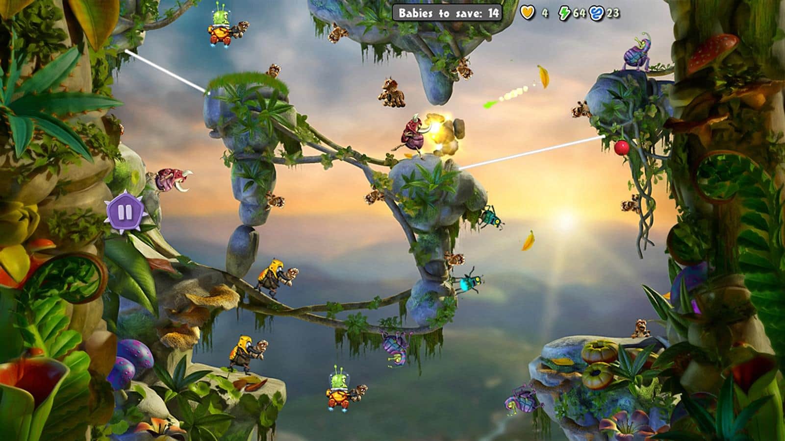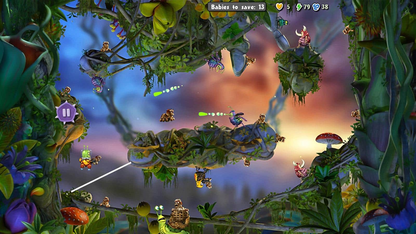 Jumping Jupingo - захватывающая игра для windows phone, в которой вы будете помогать маленьким паучкам выжить. Точно цельтесь, и стреляйте своей паутиной цепляясь за деревья и кусты, таким образом перемещайтесь до безопасного места. На вашем пути будет большое количество различных врагов, которые постараются отобрать у вас ценную патину. В этой игре вас ждет большое количество бонусов и спасительные улитки, которые перенесут вас в безопасное место.