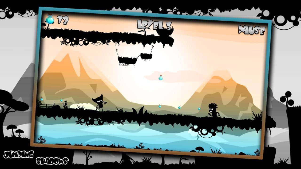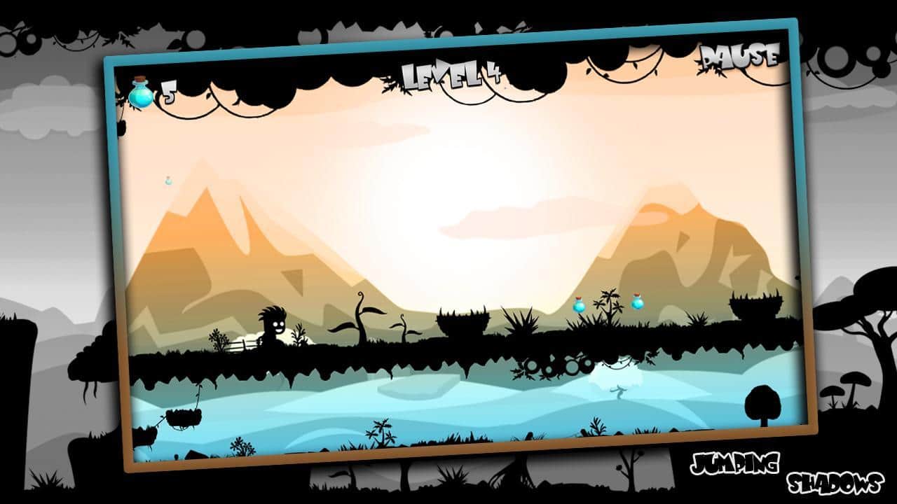 Jumping Shadows - увлекательная аркада сделанная в темных тонах с необычайно легким управлением. Вам предстоит управлять человечком, бегущим через различные миры и перепрыгивая через колючие растения и шипы. Управление в игре очень легкое от вас требуется только в определенные моменты нажимать на экран, чтобы ваш герой совершил прыжок. В игре более 100 уровней, которые разделены на три уровня сложности, если по началу вам будет казаться что игра осень простая, то затем уровень сложности взлетит вверх и вам потребуется приложить немало усилий чтобы пройти их.