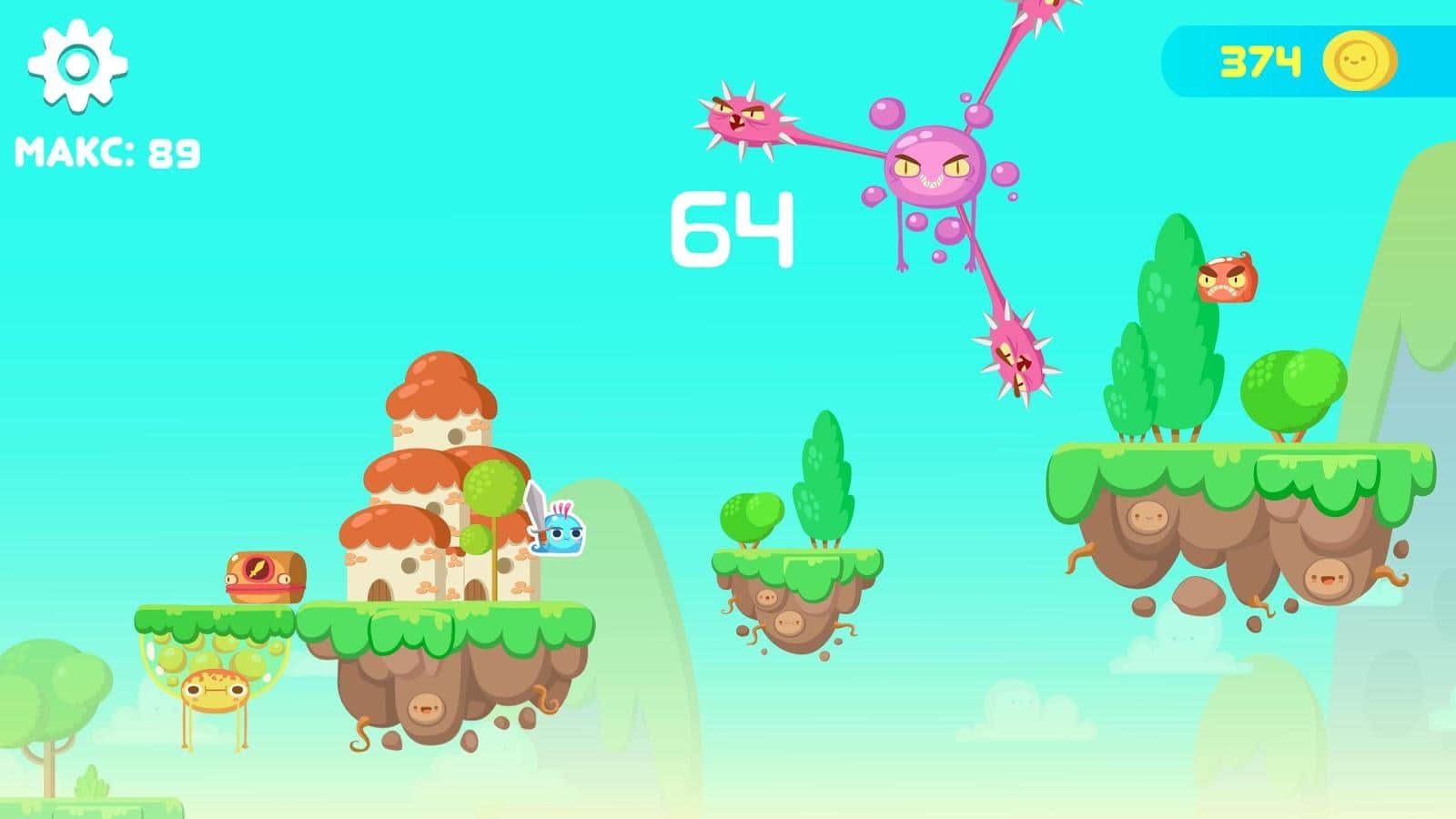 Jumping Slime – управляйте забавным героем который путешествует по опасным уровням и сражается с врагами. В этой игре вы возьмете под свой контроль желеобразного персонажа, который должен пройти все испытания, обойти смертельные ловушки и уничтожить всех монстров. Отправляйтесь на поимки сокровищ вместе с отважным героем и прыгайте по платформам уничтожая многочисленных врагов, вставших на пути. По пути собирайте золото, которое пригодиться вам для строительства высокой башни где вы сможете хранить оружие, артефакты и добытые сокровища.