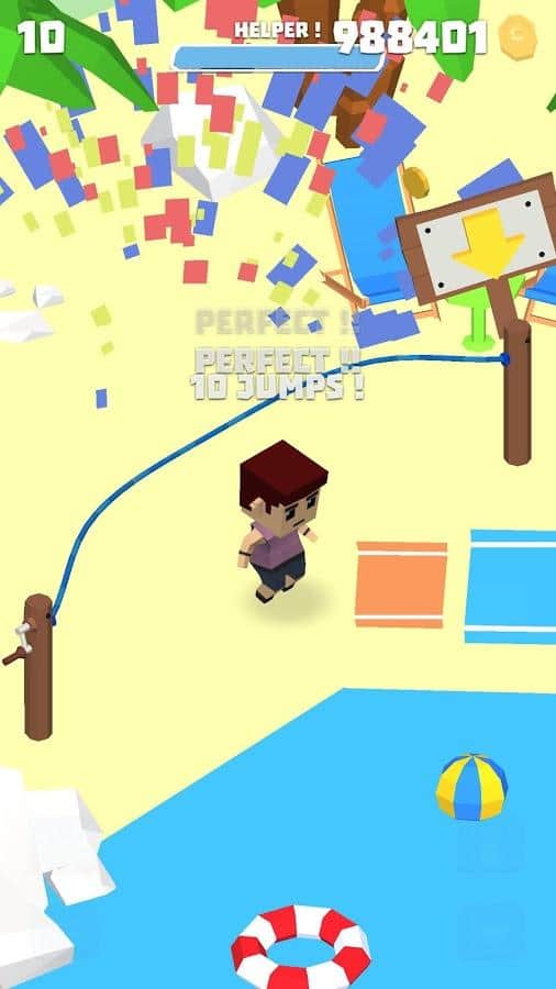 Jumpy Rope – веселая игра на андроид, которая перенесет вас в детство, где вы будете прыгать на скакалке. В этой игре вы возьмете под свой контроль главного героя и заставите его прыгать на скакалке, подобрав свой темп. Перемещайтесь по парящим в небе островам на каждом из ни прыгайте на скакалке. С помощью одного прикосновения к экрану совершайте прыжки и применяйте разнообразные усиления и бонусы, которые позволят вам добиться отличных результатов и установить свой рекорд. Зарабатывайте очки и тратьте их на покупку одежды для своего персонажа или изменения его внешности. Играйте со своими друзьями.