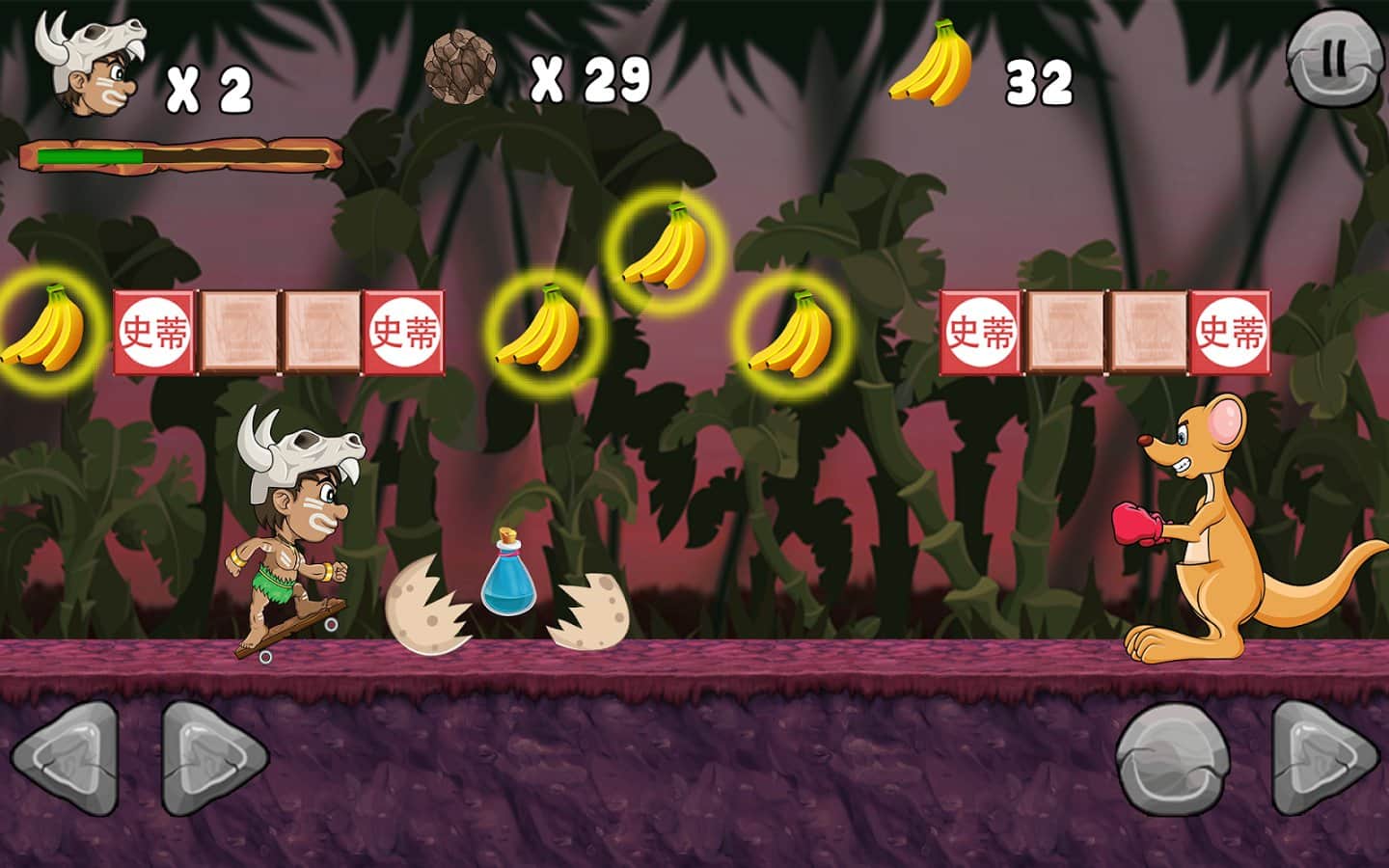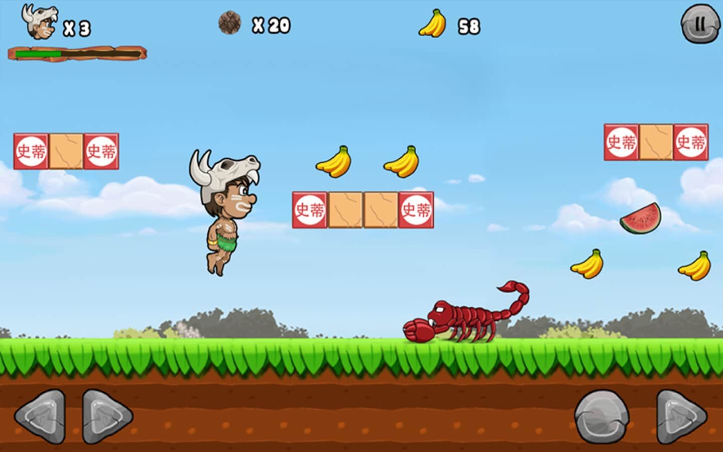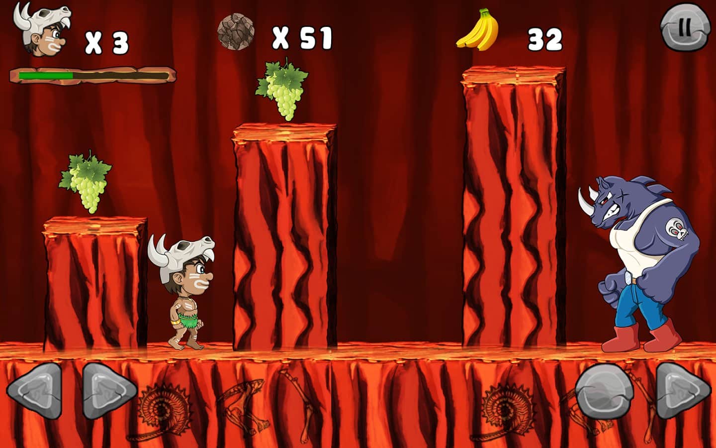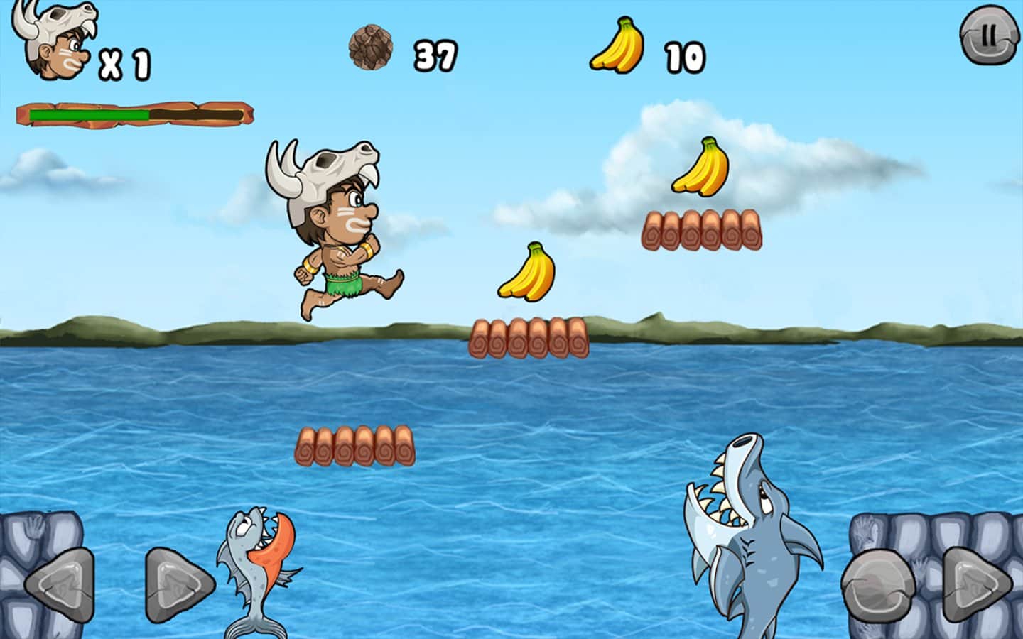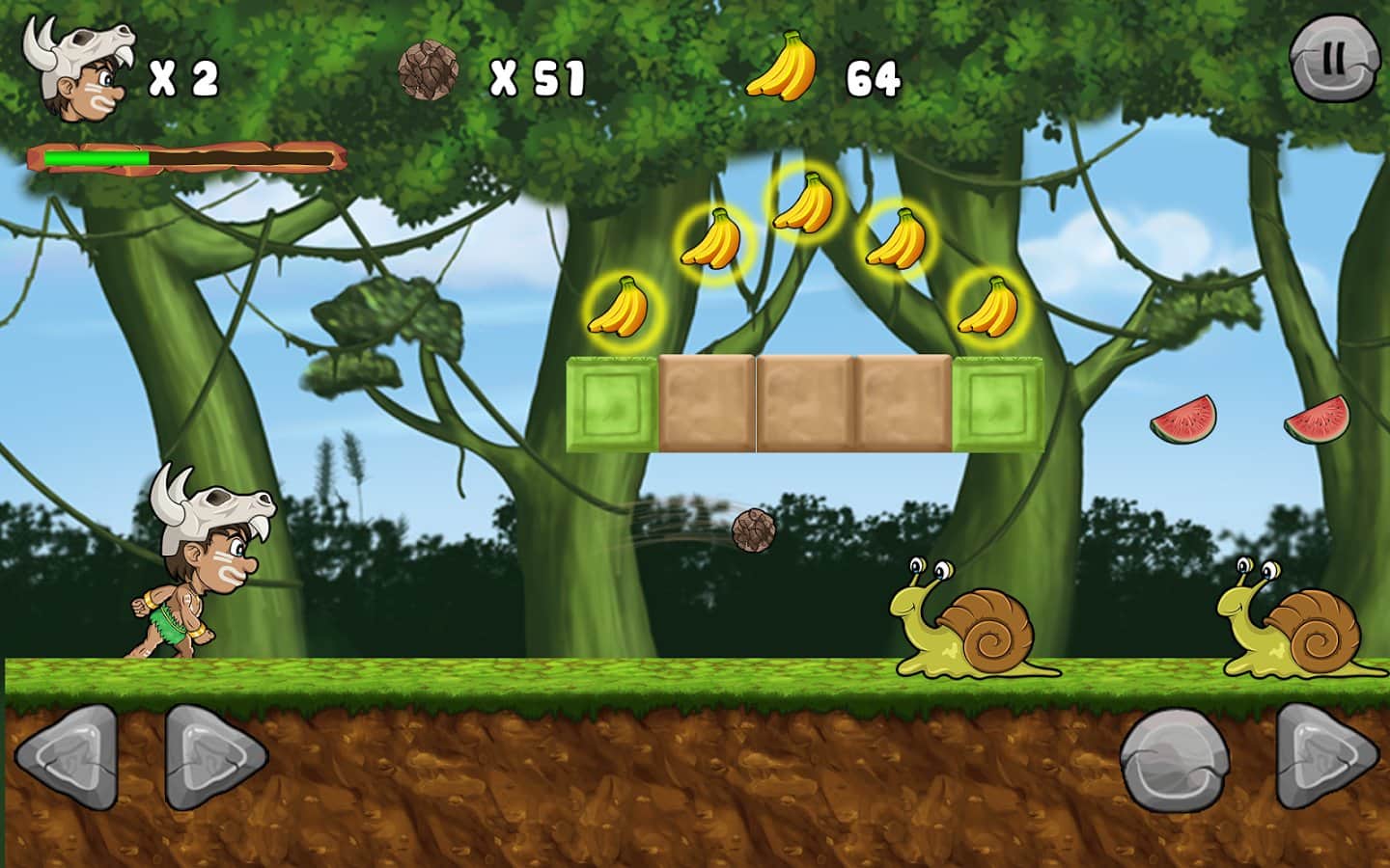 Jungle Adventures – платформер на андроид, где вы поможете первобытному человеку по имени Мэтт спасти принцессу. Злой Лев похитил вашу принцессу и вам не чего большего не остается, как найти ее. Путешествуйте по сказочному миру этой игры и сражайтесь с многочисленными змеями, лягушками, улитками, пчелами, рыбами, крабами и другими врагами которые встретятся вам на пути. Открывайте для себя новые миры, где вам предстоит исследовать пещеры, подводные миры и густые джунгли. С каждым новым уровнем сложность игры будет увеличиваться если на первых порах, вам будет легко давить своих врагов, то дальше победить их будет не так и просто. Сражайтесь с сильными боссами в конце каждого уровня и собирайте по пути монетки и фрукты, которые подарят вам новые жизни.