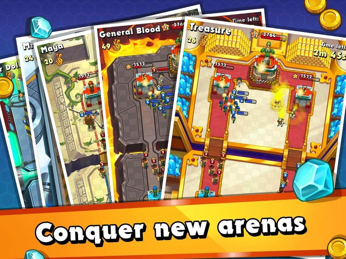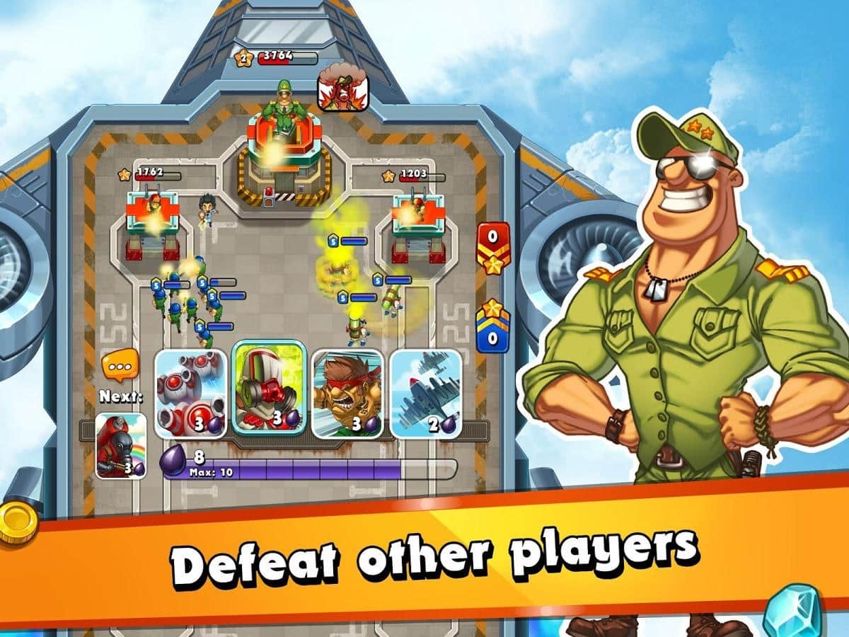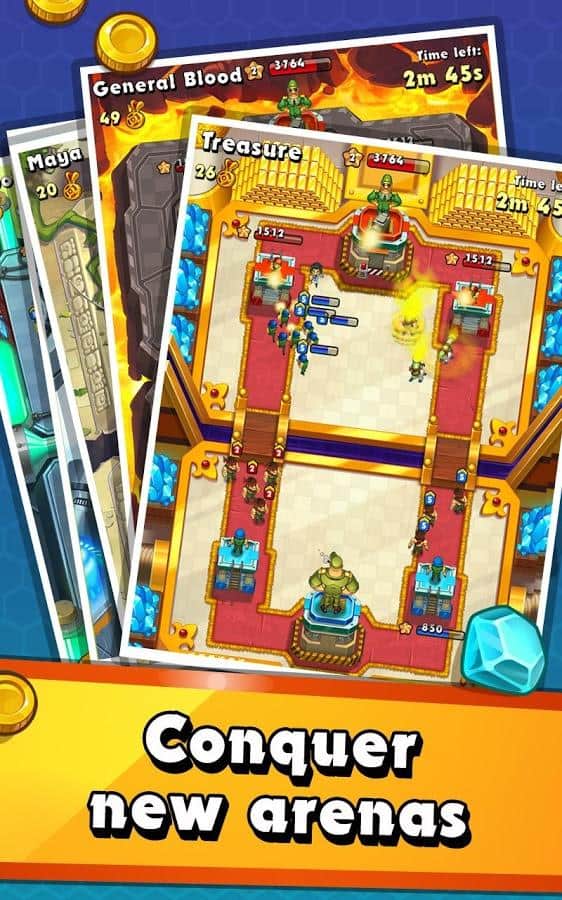 Jungle Clash – онлайн стратегия на андроид, с динамичными и непредсказуемыми боями, происходящими в реальном времени. В этой игре вы возьмете под свой контроль команду отважных героев, и будете сражаться с другими игроками в зарослях джунглей. Бросайте вызов сильнейшим игрокам и бесстрашно атакуйте их, поворачивая исход битвы на свою сторону. Соберите свою неповторимую коллекцию карт и меняйте в ней героев, добиваясь наилучших результатов. В этой игре вас ждут безграничные возможности по разработке своей тактики ведения боя и защиты. Недооценивайте своих врагов и постоянно улучшайте свою команду. Игра порадует игроков отличной графикой, невероятными визуальными эффектами и динамичными сражениями которые не оставят не кого равнодушными.