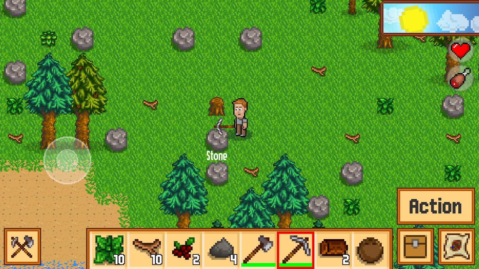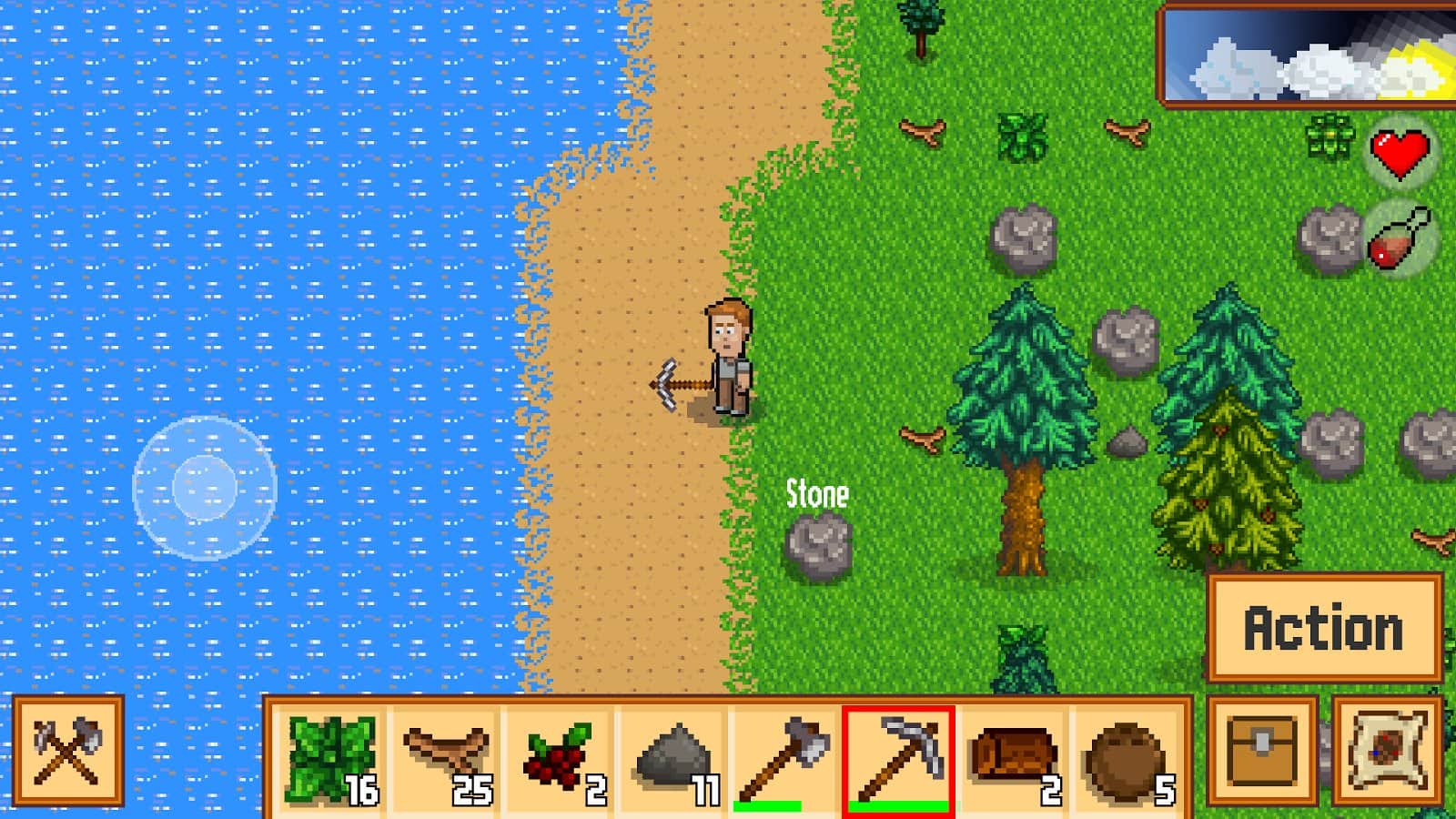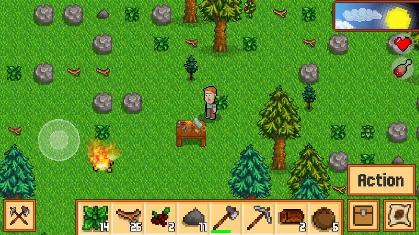 Jungle Survival Island - игра выживалка в пиксельном стиле события которой разворачиваются на одном из тропических островов. К сожалению сюжетная линия носит лишь поверхностный характер, нам известно лишь то что наш герой оказался на необитаемом острове и теперь вынужден постараться выжить. Главным аспектом в игре сделано именно исследование и изучение мира, а уж затем лишь сбор ресурсов, крафт и прочее. Еще одной особенностью Jungle Survival Island является то что главная цель, помимо непосредственного выживания это найти путь домой, а для этого необходимо тщательно обследовать остров и разгадать все его тайны, при этом не стоит забывать о насущных нуждах, таких как пропитание, поиск ночлега, разведения огня.