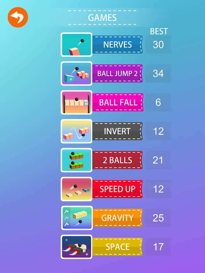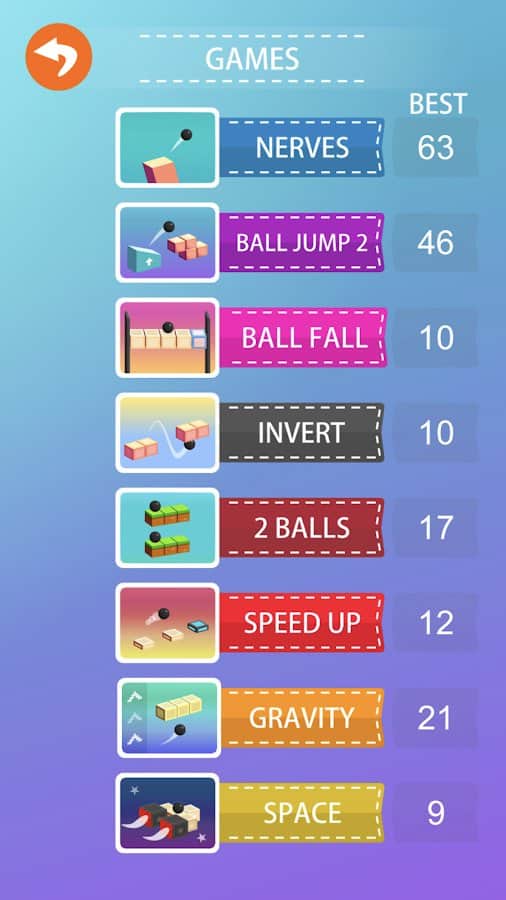 Just Jump – увлекательная игра на андроид, где вы будете управлять прыжками шарика. В этой игре вы будете помогать шарику, преодолевать опасную трассу и прыгать по кубическим блокам. Тренируйте свою отличную реакцию и не дайте шарику упасть в пропасть. Шарик в этой игре будет катиться самостоятельно, вашей задачей будет в нужный момент нажимать на экран девайса для того чтобы совершить прыжок и обойти все преграды и ловушки на пути. Пройдите как можно больший путь в игре и установите свой рекорд. Пройдите все 9 увлекательных мини-игр и наслаждайтесь приятной графикой.