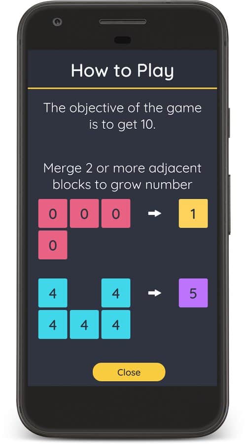 Just Make 10! Combine & Grow – увлекательная головоломка на андроид, где вы будете объединять блоки. Перед вами в этой игре откроется поле, на котором размещены разноцветные блоки, имеющие различное цифровое значение от 1 до 9. Вашей задачей будет объединять одинаковые блоки воедино и получать новые значения. Прилагайте всю свою наблюдательность и логику для того чтобы достичь максимального значения 10 и более. Играйте эту бесконечную игру и набирайте максимальное значения цифр, поднимаясь все выше в таблице лидеров и достижений. Следуйте правилам игры и соединяйте одинаковые блоки находящиеся рядом.