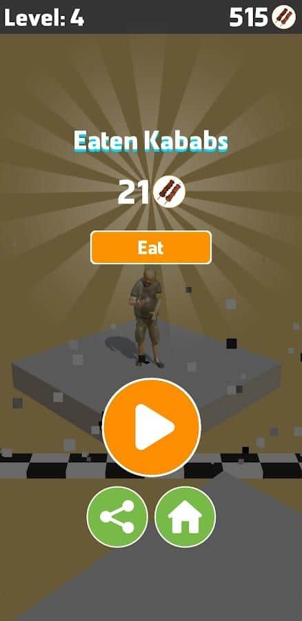 Kabab Eater - Mama Vandam - Способствуйте развитию главного персонажа и пройдите длинный путь для получения ценных призов — вкусных кусков шашлыка. С каждым разом у вас будет получаться лучше и лучше, поэтому тщательно тренируйтесь вовремя нажимать на экран для прыжков и совсем скоро вы побьете собственные рекорды многочисленное количество раз. Ставьте определенные цели и достигайте их, получайте награды за выполненные задания и не забывайте про возможность поесть прямо на платформах, когда вы на них окажетесь каким-либо способом.