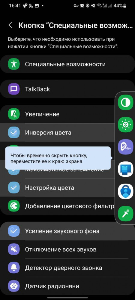 Рассматриваемое нами меню, возможно, не будет интересно широкому кругу пользователей, но некоторым однозначно упростит взаимодействие со смартфоном. Дело в том, что в нем можно расположить специфические опции, такие как, полное отключение звуков с блокировкой физических клавиш, инверсия цвета, повышение контрастности, приближение конкретной области экрана, увеличение громкости некоторых звуков и другие опции. Все они призваны помочь пользователям с особенностями слуха или зрения, а также пожилым владельцам смартфонов, но, естественно, могут быть полезны и в других ситуациях.