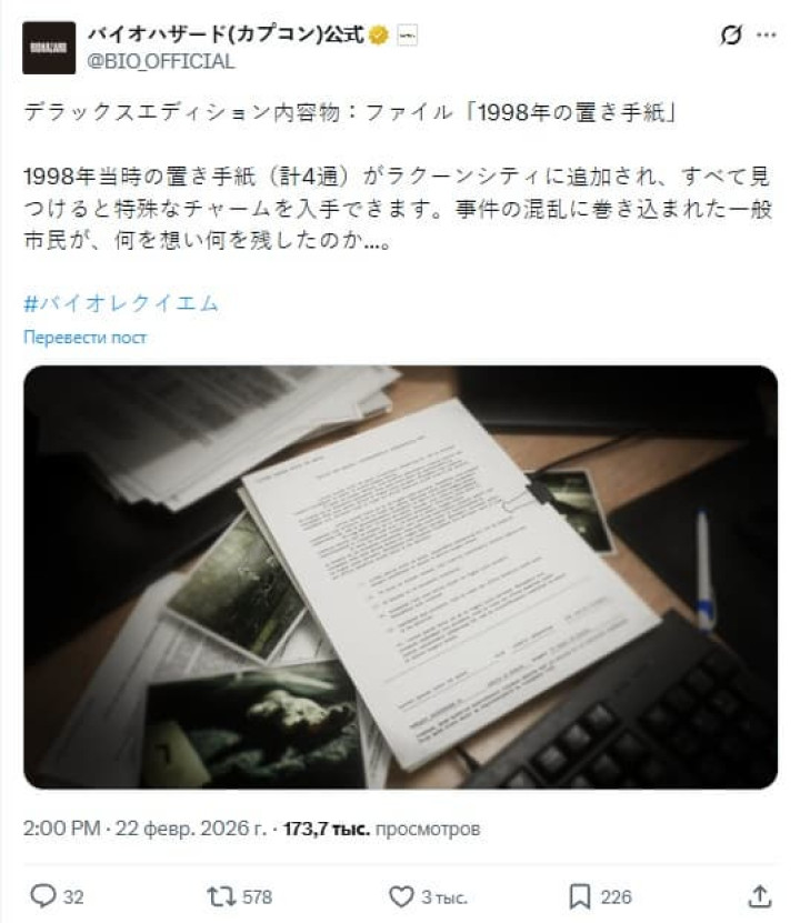 Requiem получает не только цифровой Deluxe‑набор, но и физическое издание со металлической коробкой и коллекционными элементами. Кроме более-менее привычной косметики, скинов на оружее и прочих визуальных примочек, в комплект включен набор файлов «Letters from 1998». Серия всегда строила атмосферу через записки, дневники и отчёты, найденные в локациях. В Requiem этот приём перенесли в реальность: игрок получает не артбук, а улики. Он делает то же, что и персонажи — изучает произошедшее.