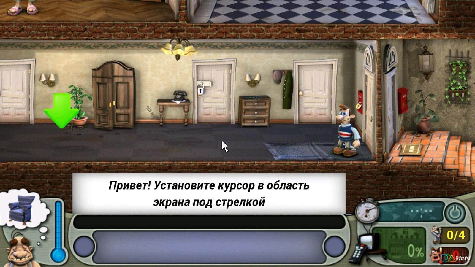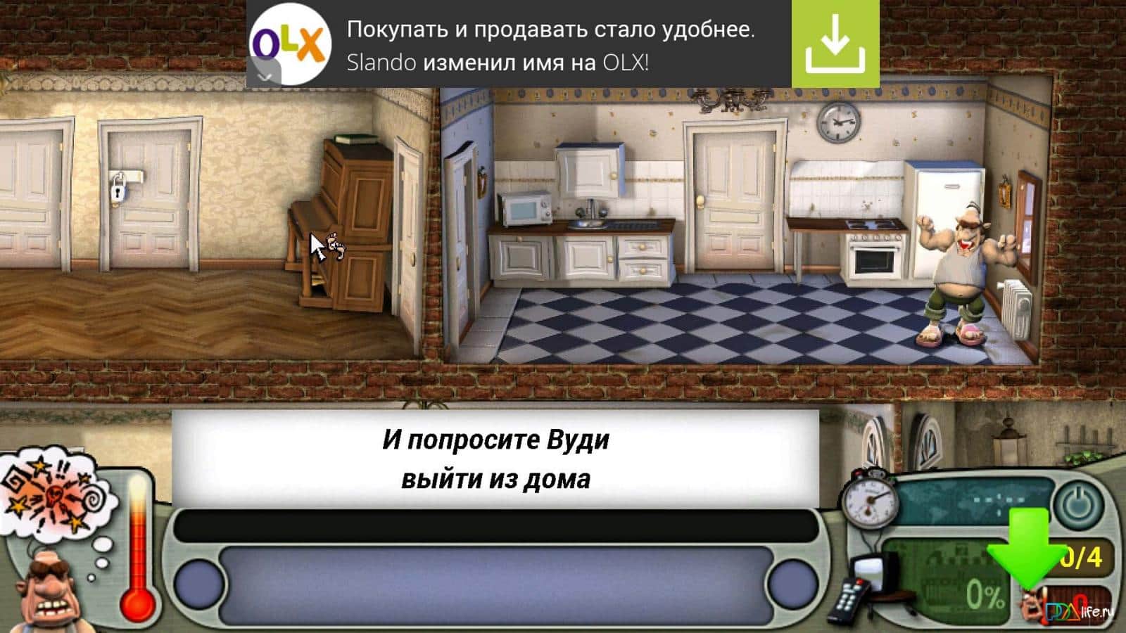1.Геймплей - ходишь,ищишь предметы и мешаешь жить особу жиробасному,то модешь яйцо в микроволновку подсунуть или намазать бинокль клеем, а потом пузо приклеиться глазами к биноклю когда будет подгялдывать за какой то модам