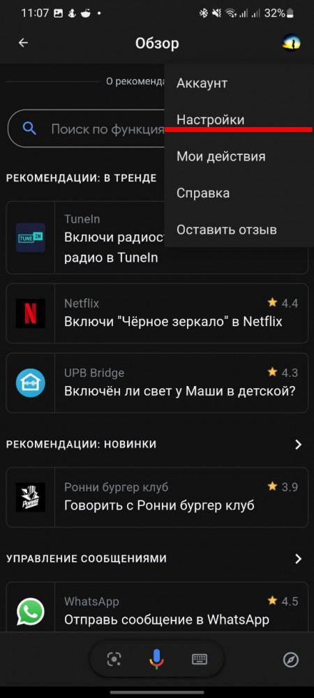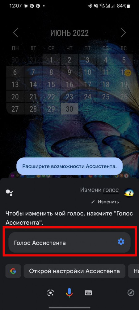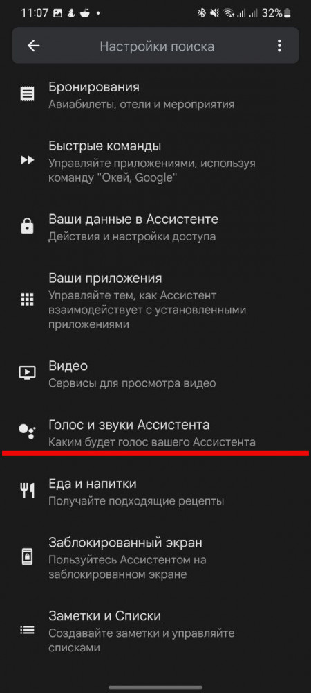 Другой вариант добраться до той же функции — запустить Ассистент и дать команду “Измени голос”, так вы сразу перейдете к нужному пункту меню.