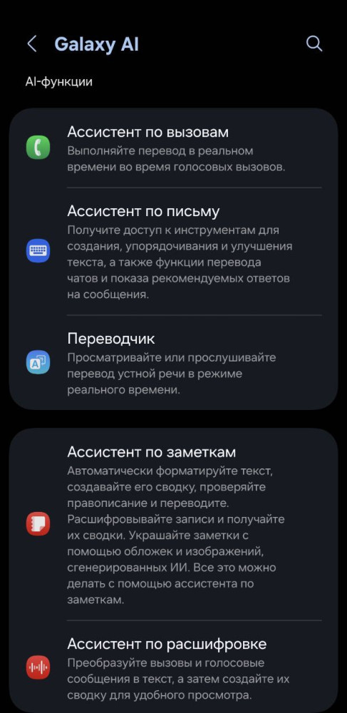 К сожалению, для Galaxy AI не предусмотрено единой кнопки, которая отключила бы Ассистента полностью, но вы можете вручную отключить каждый из модулей, чтобы ИИ больше не вторгался в ваше взаимодействие со смартфоном.