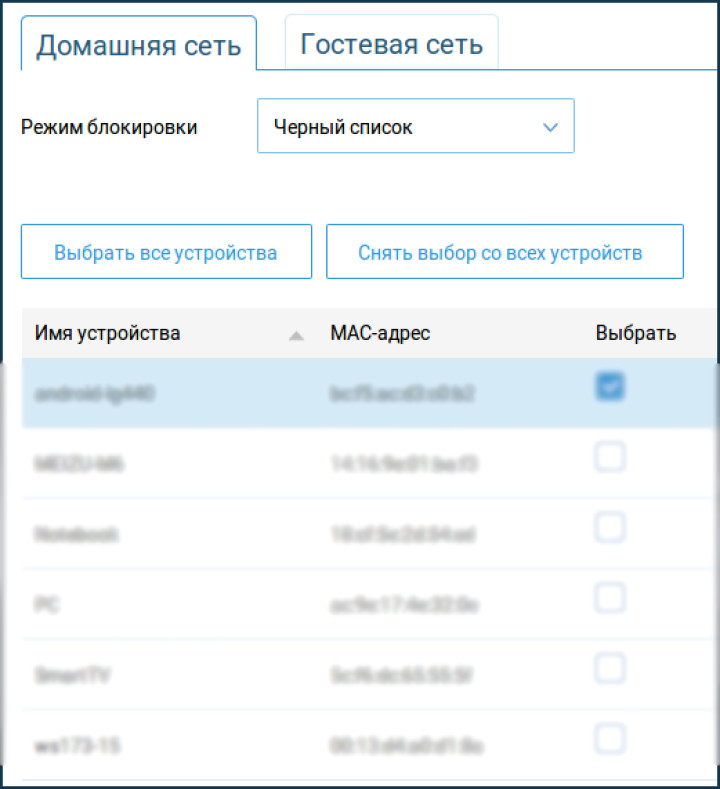 Это довольно радикальный метод, который подразумевает, что вы не приглашаете гостей и ваш вайфай может использовать жестко ограниченный круг устройств. Аналогично, можно использовать черный список из тех гаджетов, которые не смогут подключаться к вашей беспроводной сети, даже если у них есть пароль. Чтобы создать подобный список, вам нужно знать MAC-адрес гаджетов, из которых он будет сформирован, для этого можно воспользоваться нашей инструкцией или проверить список подключенных устройств в настройках роутера. Помните, в белый список должны попасть все ваши гаджеты: смартфоны, планшеты, ноутбуки, устройства IoT. Чтобы включить списки, ищите в настройках роутера пункт “Контроль доступа” или “Режим блокировки”.