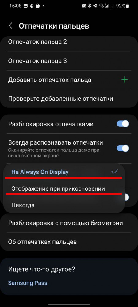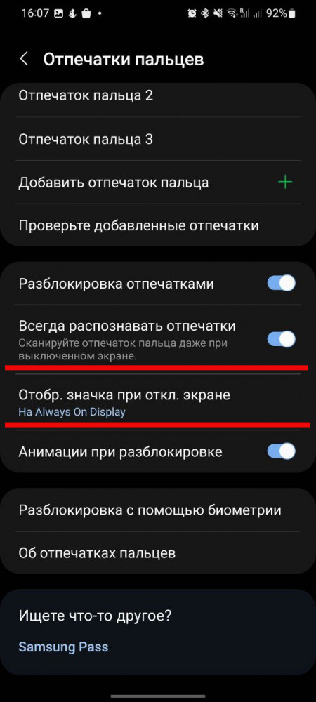 Как отключить сканер отпечатков на выключенном экране