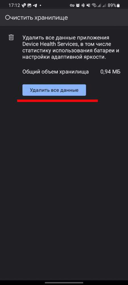 Далее вы обнаружите здесь либо одну кнопку для удаления всех сохраненных данных, либо две, первая из которых нужна для удаления информации, связанной с работой адаптивной яркости. Выбираете желаемый вариант и подтверждаете удаление.