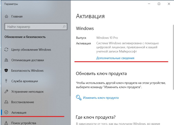 Проверить, есть ли на вашем устройстве активная лицензия, можно но пути Пуск — Параметры — Обновление и безопасность — Активация. Сюда же нужно вписать имеющийся ключ при переносе лицензии.