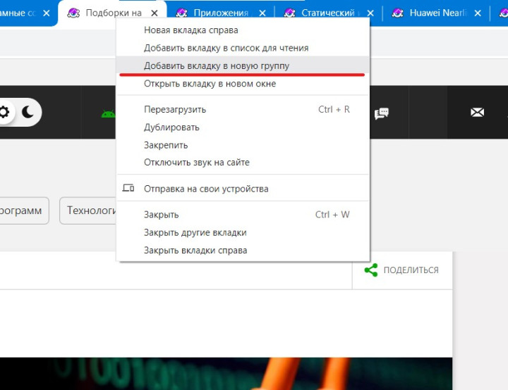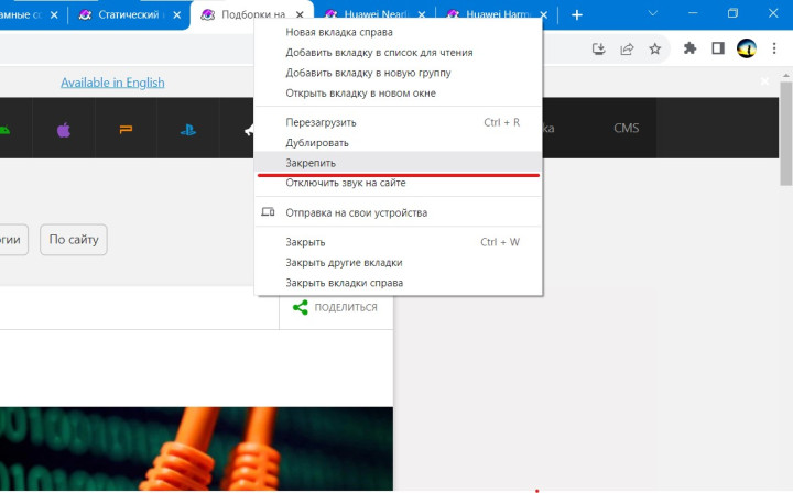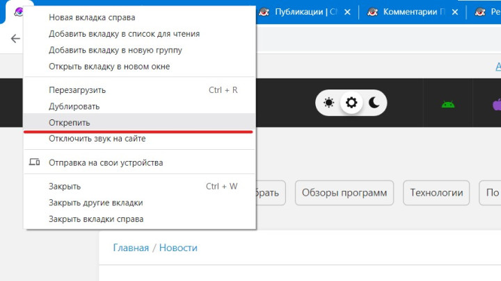 Если в вашем браузере открыто сразу много страниц, в них легко заблудиться, даже если вы уже освоили группировку. Самые важные страницы можно закрепить в начале списка, чтобы вы всегда знали где их искать. Такие страницы отображаются слева, но в компактном варианте: отображается только ярлык без текста. Кнопка закрытия вкладки также исчезнет, чтобы исключить случайное закрытие вкладки. Если же эта страница вам больше не нужна, выберите вариант “Закрыть” из контекстного меню. Здесь же вы найдете пункт “Открепить”, если вкладка все еще нужна, но уже не является приоритетной.