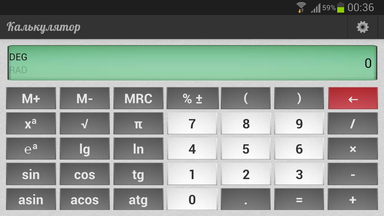 Калькулятор – красивый и функциональный калькулятор для андроид от разработчика Maria Sinchevskaya, содержащий набор инженерных функций и позволяющий полностью вносить математическое выражение. Вам будет доступно меню для возможности переключения между расчетами в градусах и радианах. Данный калькулятор весьма полезен, быстр и удобен в пользовании!