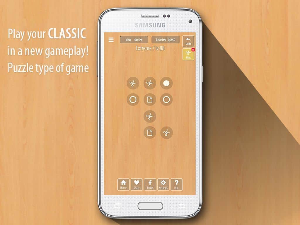 Камень Ножницы Бумага Эволюция - Довольно интересная и забавная головоломка на ваши мобильные девайсы. Игра прекрасно подойдет для людей, которым нужно проснутся самому и пробудить свой мозг перед учёбой или работой. Ну, если вы хотите банально убить время с пользой, эта игра так же и для вас! Головоломка выполнена в простом и понятном формате. Всё что от вас требуется это двигать фигуры по клеточкам, камень выбьет ножницы из их клеточки, бумага выбьет камень, а ножницы бумагу. Всё как в старой доброй игре из детства...)