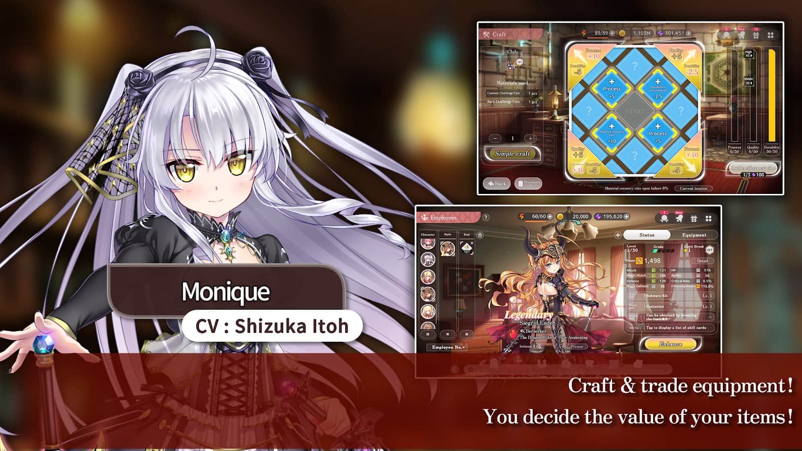 Создавай уникальное оружие и доспехи, чтобы сделать своих девушек непобедимыми.