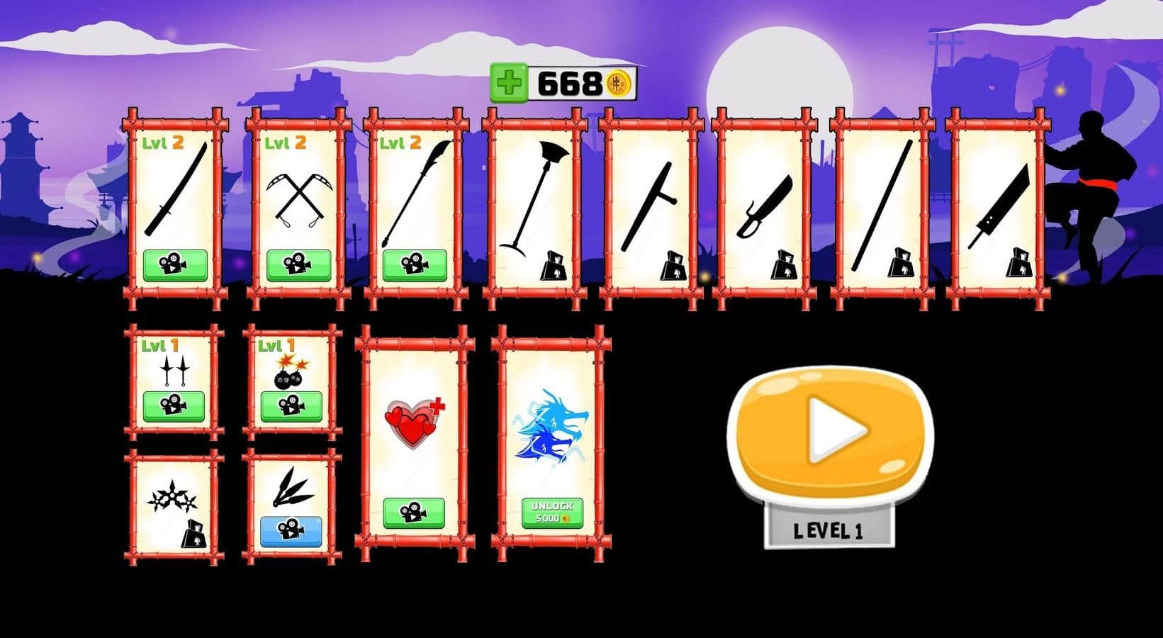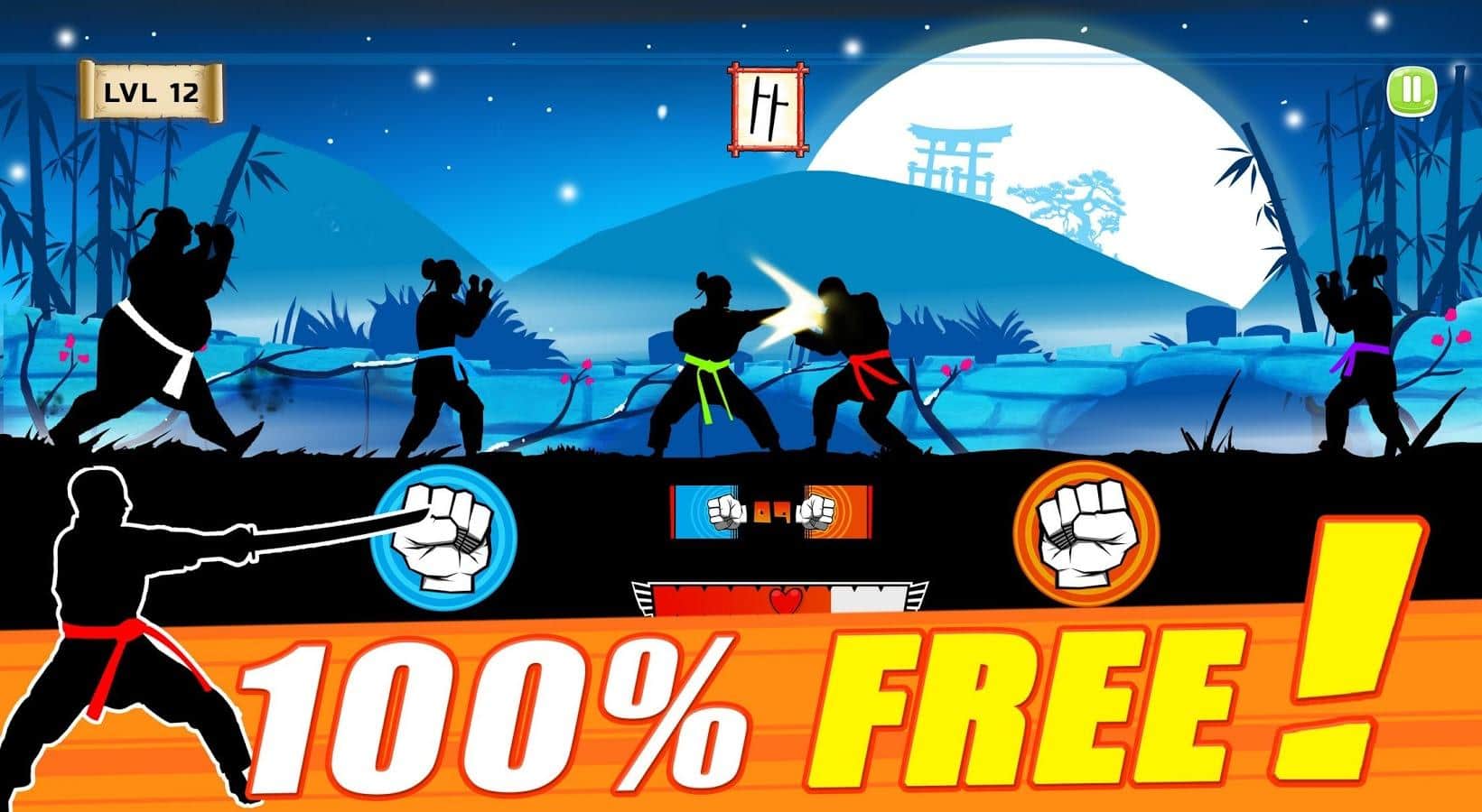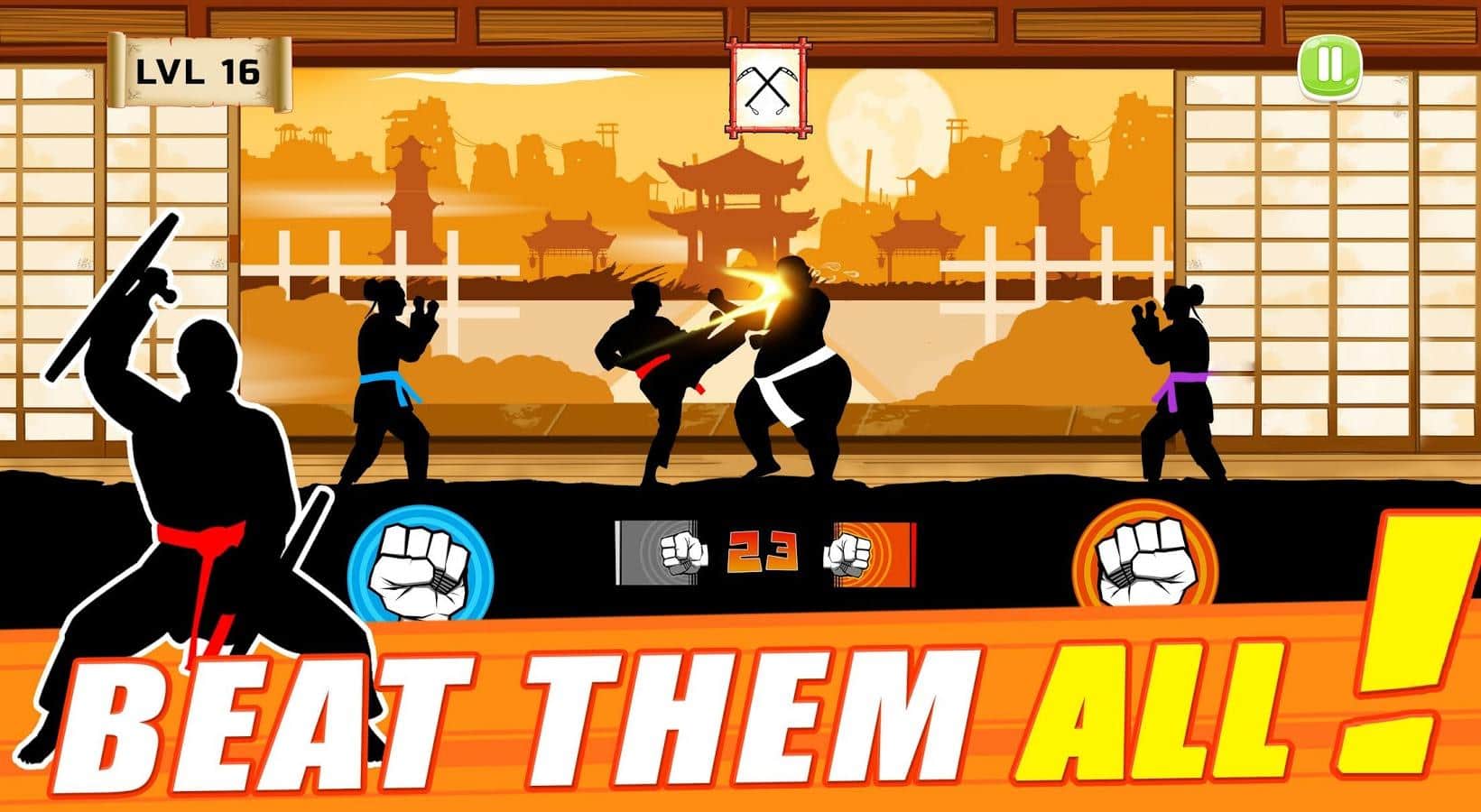 Karate Fighter : Real battles – возьмите под свой контроль мастера который владеет боевыми искусствами и проведете его по всем уровням игры. Применяйте боевые искусства и сражайтесь с врагами, которые будут атаковать вас с двух сторон. Поворачивайте героя лицом к нападающему на вас врагу и покажите ему всю силу каратэ и кунг-фу. Наносите сокрушительные удары руками и ногами, а также применяйте различное оружие, которое вы сможете получить в качестве награды за пройденные бои. Применяйте разрушительные комбо и проведите героя через 100 уровней игры. Игра порадует вас большим выбором оружия, начиная от мечей и заканчивая сюрикэнами.
