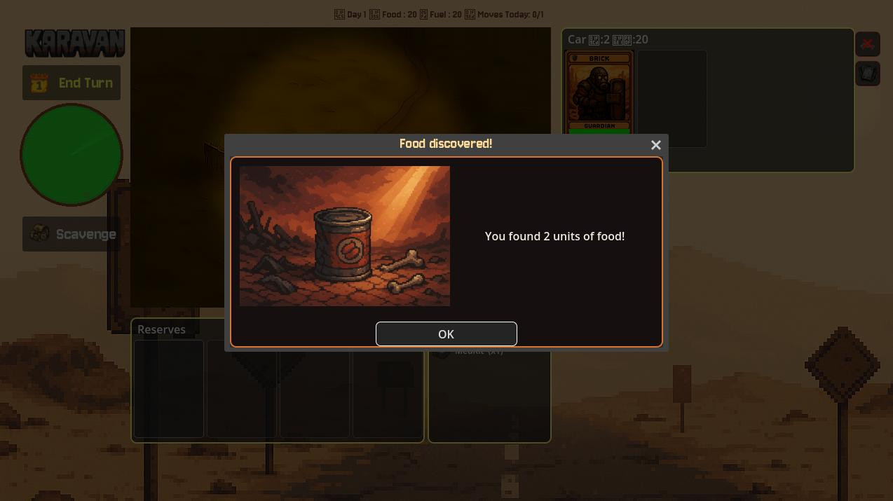Karavan - Отправьтесь в смертельный путь через выжженные пустоши, где каждый день может стать последним. В этом пошаговом рогалике вы возглавите конвой из уцелевших, будете распределять роли, укреплять машины и экономить топливо с едой, чтобы дойти до финальной схватки с боссом. Автоматические бои требуют стратегического планирования, а случайные события делают каждое прохождение уникальным. Сможете ли вы провести свой конвой сквозь голод, рейдеров и хаос пустыни?