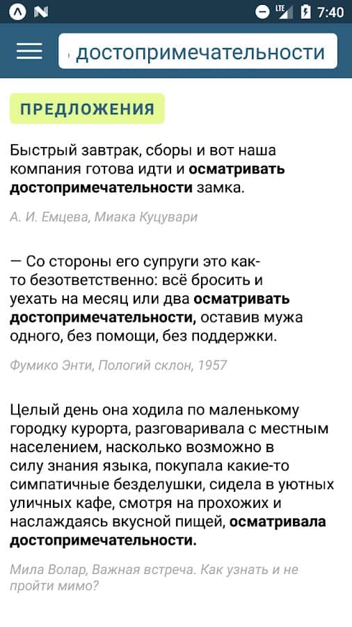 - Поиск по примерам предложений;