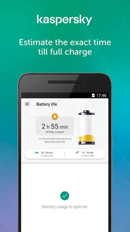 Kaspersky Battery Life - бесплатный инструмент, который поможет продлить время работы вашей батареи на андроид девайсе. Приложение в автоматическом режиме анализирует все приложение на вашем устройстве и определяет те которые больше всего потребляют заряда, сообщая вам о оставшимся времени работы вашего девайса, а также помогает отключить ненужные приложения.