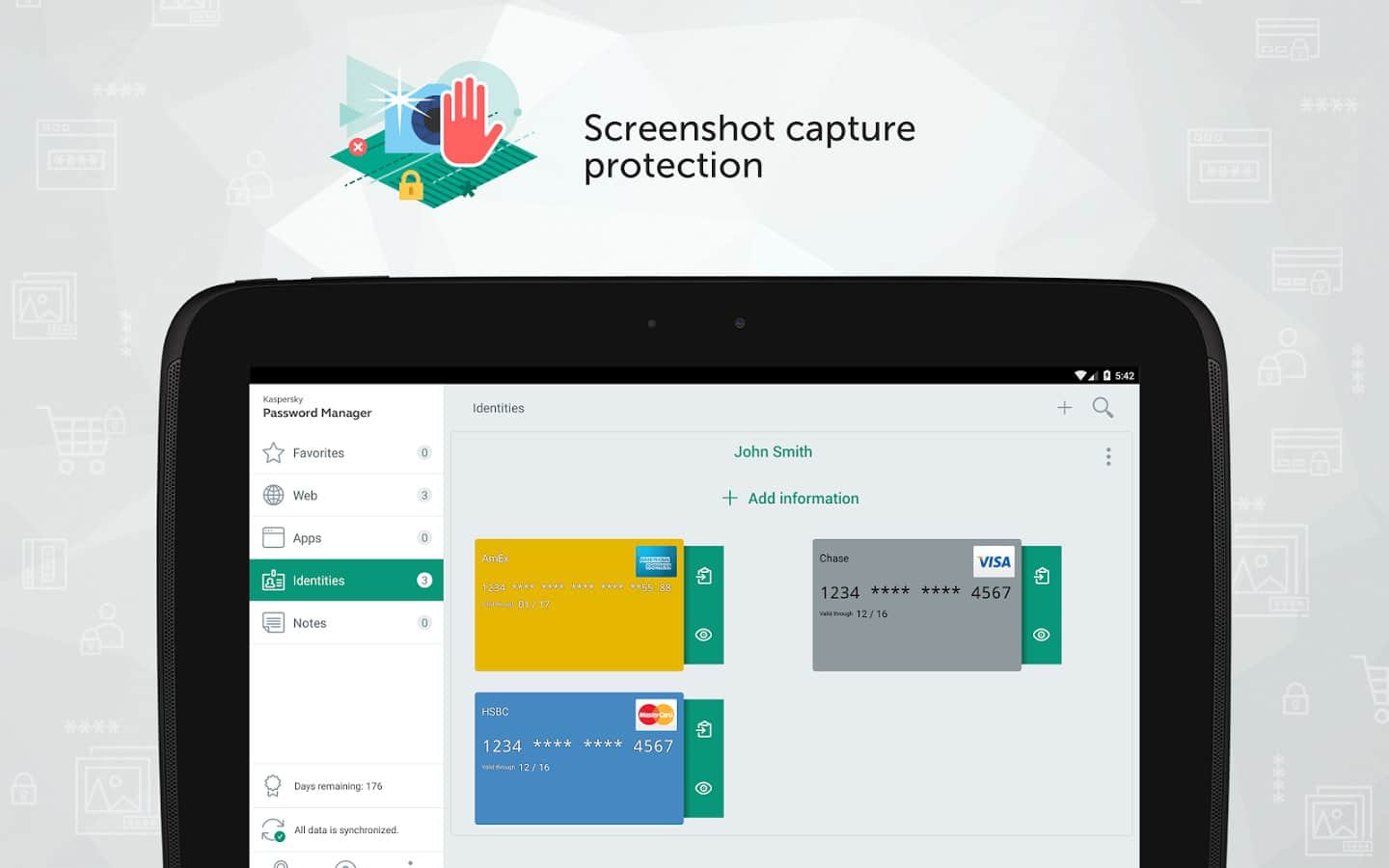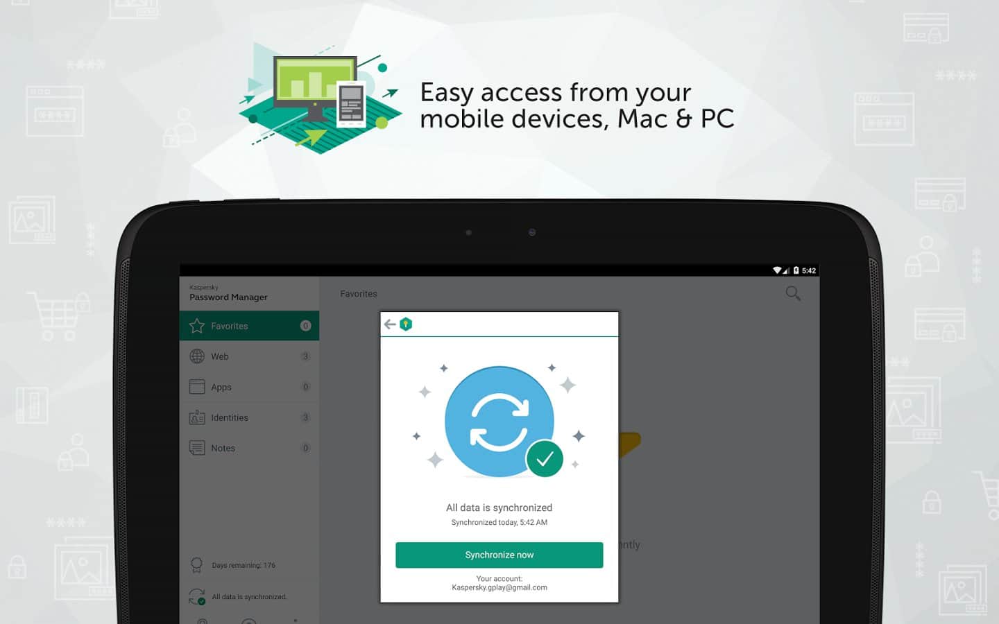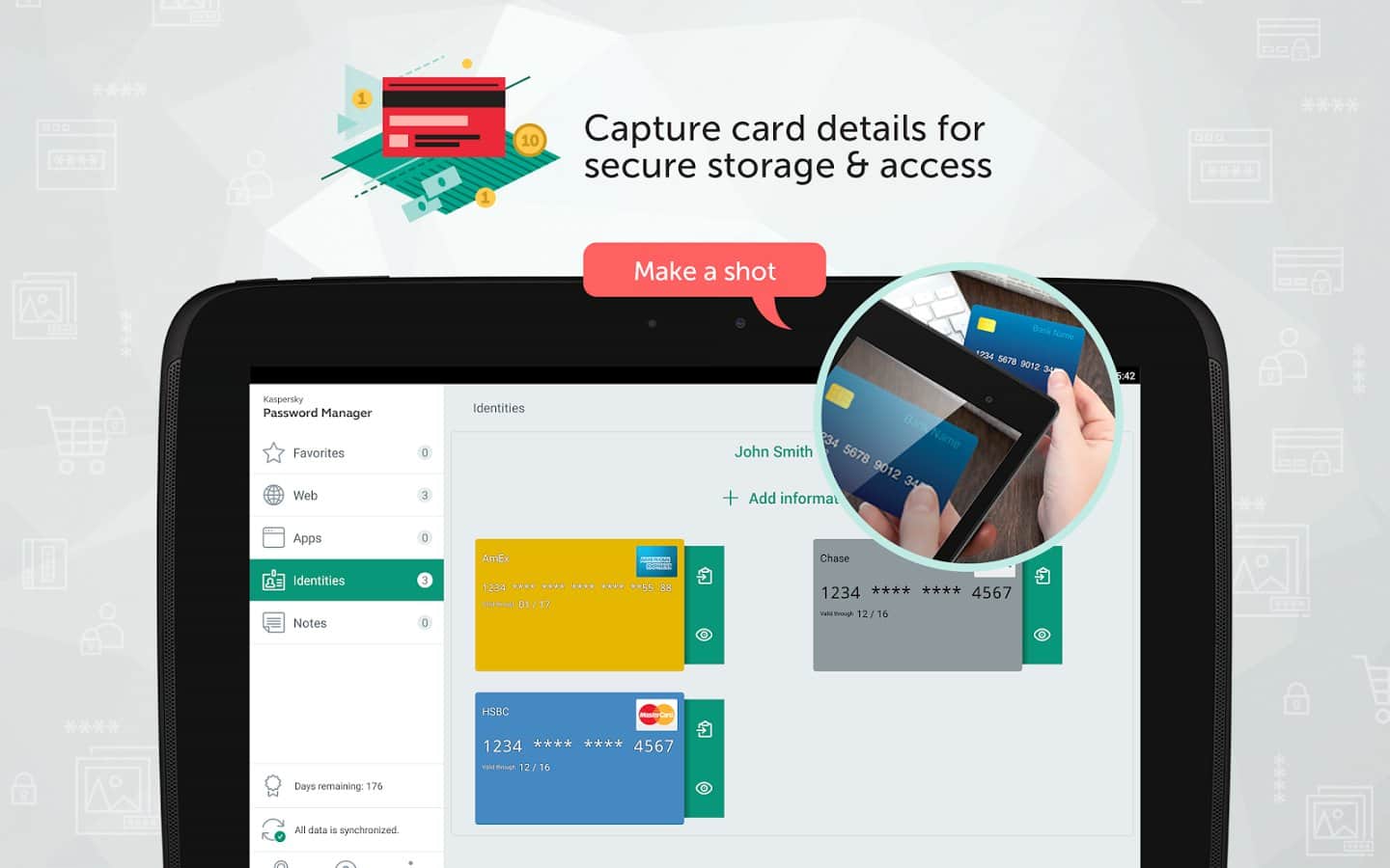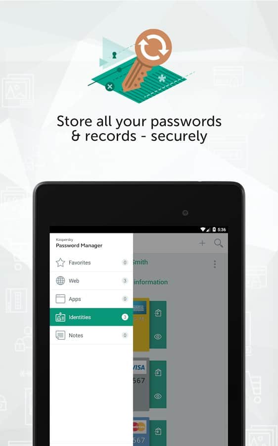 Kaspersky Password Manager - отличное приложение для надёжной защиты паролей, адресов, данных банковских кар и остальной важной информации. Часто так бывает, что все пароли или личные данные не возможно запомнить, а в открытом доступе хранить не желательно. Теперь вы сможете воспользоваться данным приложением, зашифровать все свои данные и быть спокойным за свою информацию. Приложение так же имеет возможность синхронизации со всеми вашими устройствами, что позволит воспользоваться конфиденциальной информацией в любом месте.
