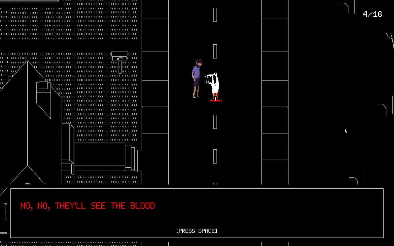 Но пожалуй, я бы похвалил саундтрек, который как-то, но не совсем способен менять тему и сам краткий рассказ про алкаша, который пытается разобраться в себе. Графончик тут... ну скажем, недостаточно мрачен, как ожидал. Он даже тут... Блин, дело даже не в этом! Почему так кратко!? Это же игра, а не короткометражка для любителей! Я понимаю если бы это делал один человек, но блин, даже один человек способен создать Undertale мать вашу!!...