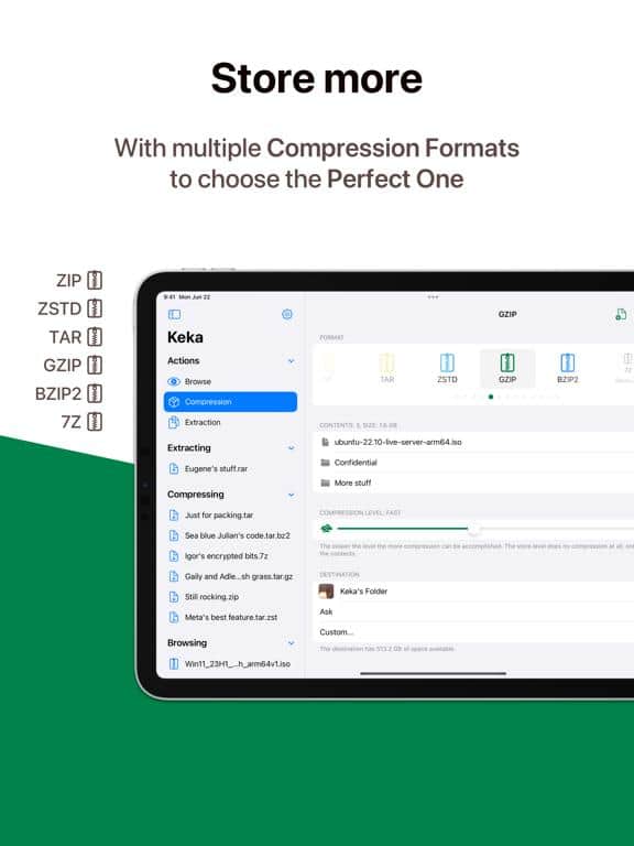 Представляем вам Keka — простой, но мощный файловый архиватор, который сделает вашу жизнь проще и удобнее. С Keka вы можете сжимать неограниченное количество файлов в различных форматах, таких как 7Z, ZIP, TAR, ZSTD, GZIP, BZIP2 и AppleArchive. Больше никаких ограничений на размер или количество файлов — Keka справится со всем, что вы ей предложите. Но Keka — это не только про сжатие. Она также позаботится о безопасности ваших данных. Вы можете зашифровать свои архивы, чтобы обеспечить конфиденциальность и защиту при хранении и обмене файлами. Будьте уверены, что ваша информация останется в безопасности.
