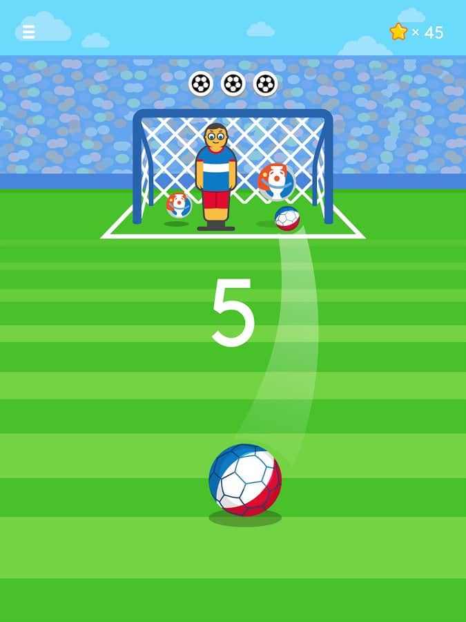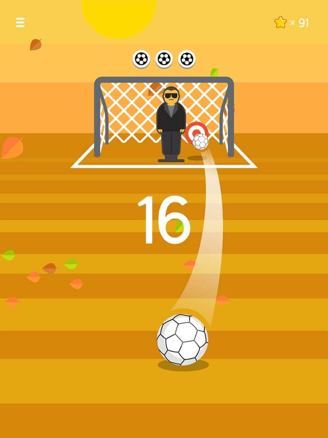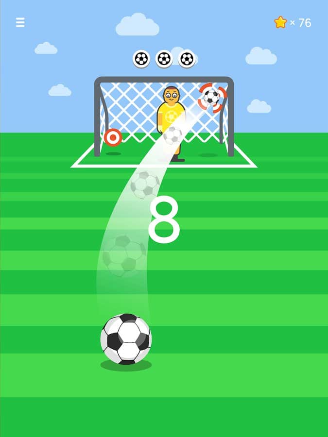 Ketchapp Football – забивайте футбольные мячи в ворота в этой увлекательной игре на андроид. В этой игре вы попадете на футбольное поле, где вашей главной задачей будет забивать мячи в ворота противника и поражать имеющиеся мишени. Приводите в движение мяч с помощью одного прикосновения пальца и забивайте голы, точно продумывая траекторию полета при этом избегая попадания в движущегося вратаря или штангу. Подбирайте правильный момент для удара и бейте по мячу. Установите свой рекорд в этой игре и получайте доступ к новым мячам и неповторимым локациям игры. В игре представлено три режима игры, а также игра порадует вас простым управлением и минималистичной графикой.