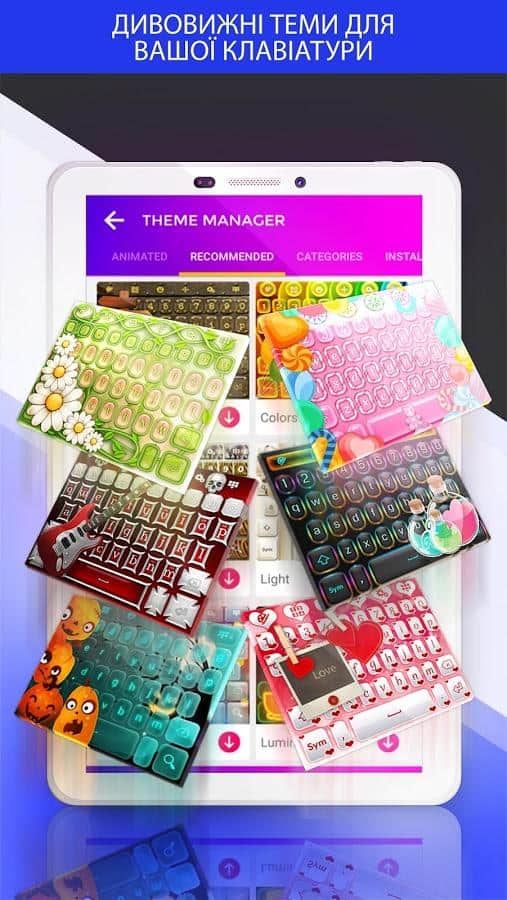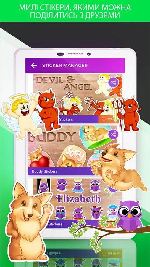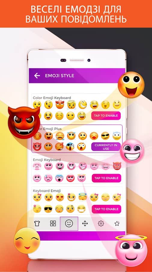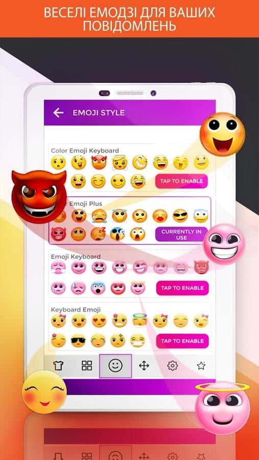 Клавиатура включает в себя пакет различных смайликов, которые станут