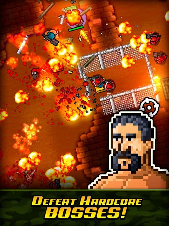 Kick Ass Commandos – динамичный экшен с видом сверху где вы будете управлять командой спецназовцев. В этой игре вам необходимо прокладывать себе путь сквозь кромешный ад и уничтожать всех врагов вставших у вас на пути. По пути своего следования вы будет встречать других спецназовцев, которым будет нужна ваша помощь. Помогайте им и они в свою очередь присоединяться к вашему отряду и будут помогать вам, уничтожать противника. Эта игра порадует вас динамичными и постоянно меняющимися локациями, где бесконечно идет стрельба и все вокруг взрывается. Побеждайте сильных боссов и получайте ценные награды.