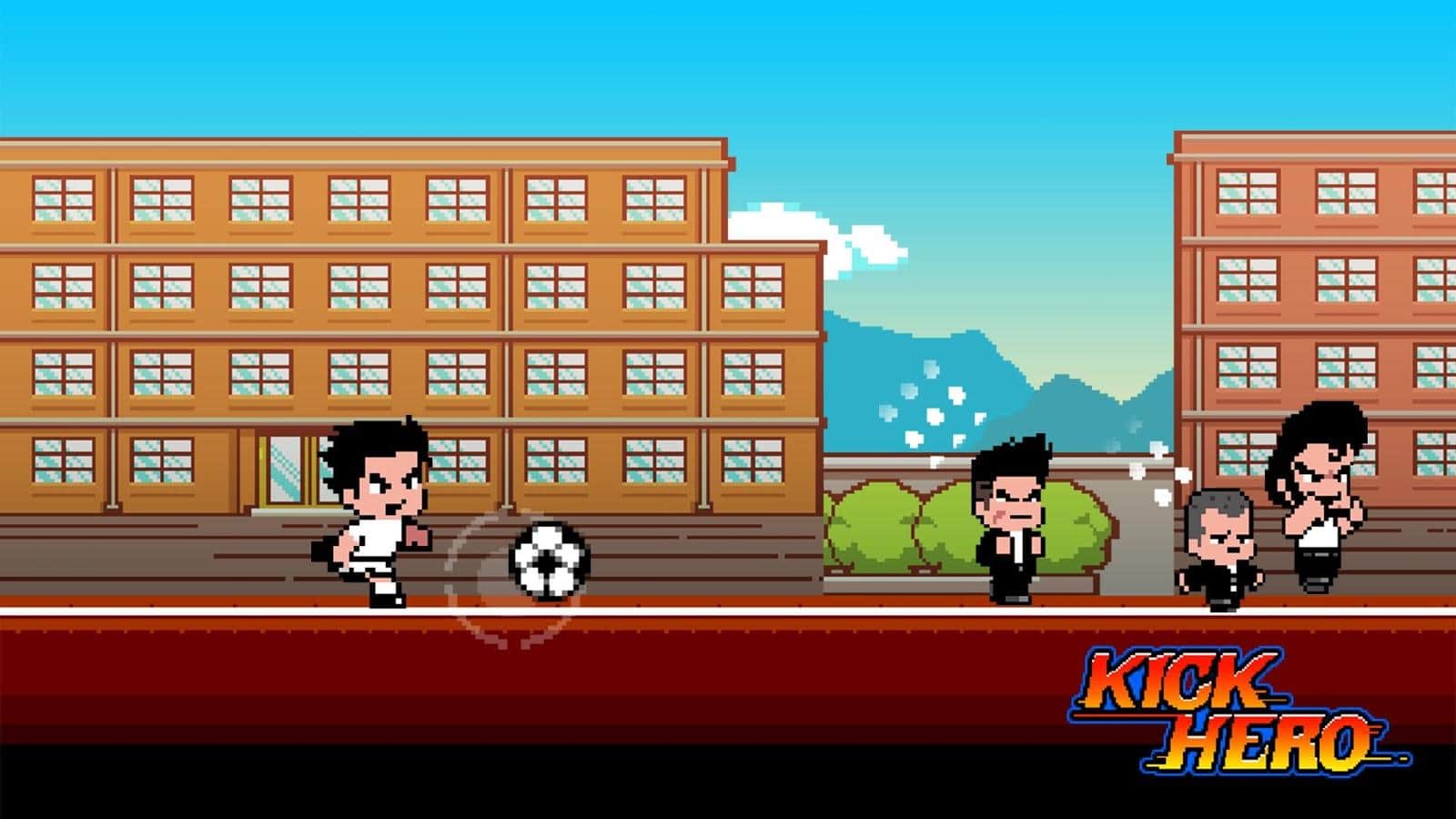 Kick Hero - динамичная игра в пиксельном стиле, геймплей которой объединяет элементы экшена, тач-аркады и ранера. Да вот такая вот солянка. Играть вам предстоит в роли футбольного хулигана, злобного мальчишки для которого не существует правил и законов, как только он выходит на улицу, то для него существует только одна цель провести мяч как можно дальше, а прохожие это просто помеха. Управляя вашим персонажем ваша задача поставить рекорд по ведению мяча, а с людьми встречающимися на улице вы сможете разобраться по своему, почему бы не попасть в них мячом, а может стукнуть рукой или ногой, а для особо непонятливых в вашем арсенале припасено несколько суперударов и замысловатых комбо, ведь на пути к рекорду вас ничто не остановит. Динамичный геймплей и приятная графика в ретро-стиле придется по вкусу всем поклонникам жанра.