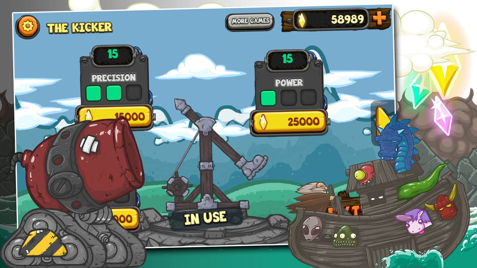 Kick the Critter - Smash Him! - захватывающая игра, в которой вам предстоит запускать в небо забавного героя. С помощью катапульты запускайте в небо вашего героя, и смотрите как далеко он сможет пролететь, при этом собирая монетки и сбивая злых врагов. Модернизируйте или покупайте новые трамплины для того чтобы пролететь как можно дальше, а также улучшайте навыки своего героя для того чтобы он приземлялся на живот при падении.