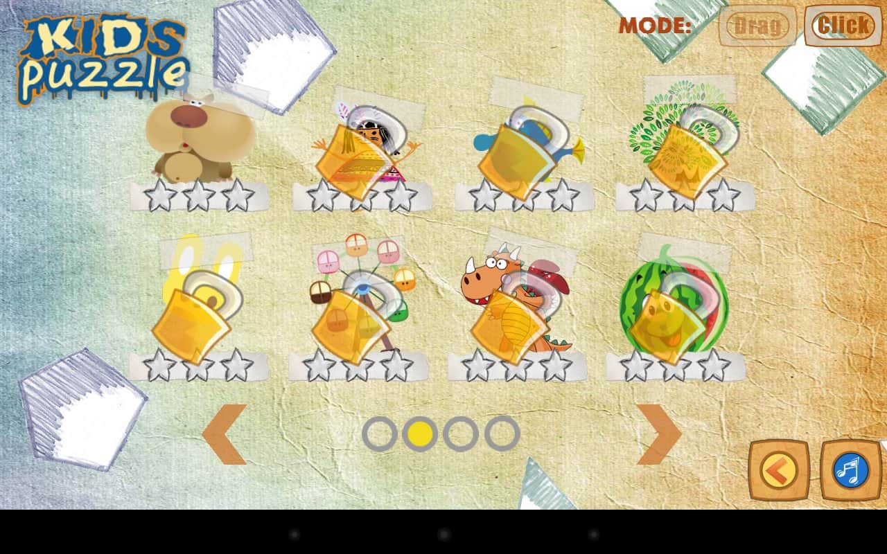 Kids Puzzle HD – красочная детская развивающая головоломка на андроид для наших маленьких деток. Мультяшные картинки разделены на две части, задача ребёнка соединить эти половинки и получить целую картинку. Игра позволяет развивать умственные и моторные навыки вашего ребёнка. В игре 24 уровня, так что ваш малыш не заскучает.