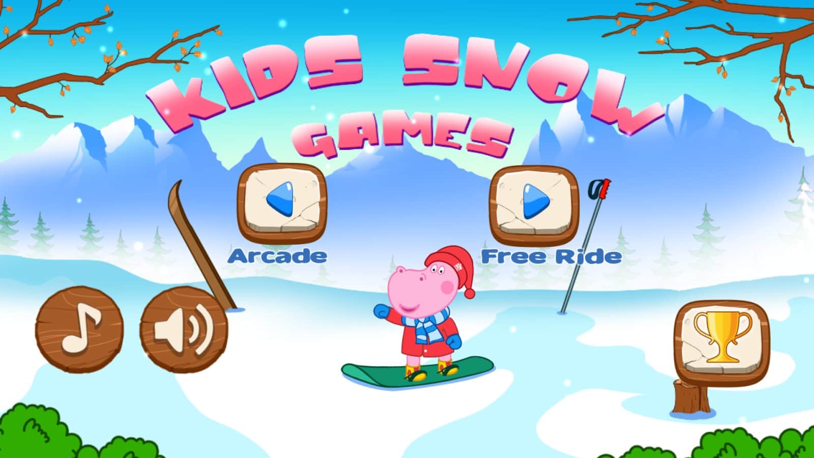 Kids Winter Games – увлекательная игра для детей где они будут помогать бегемоту Пепа, осваивать зимние виды спорта. В этой игре ваш герой будет ездить на сноуборде, и проделывать различные трюки. Катайтесь по различным трассам и выполняйте разнообразные миссии, а также проделывая всевозможные трюки, используя для этого трамплины и подъемы. В игре представлено два режима игры: