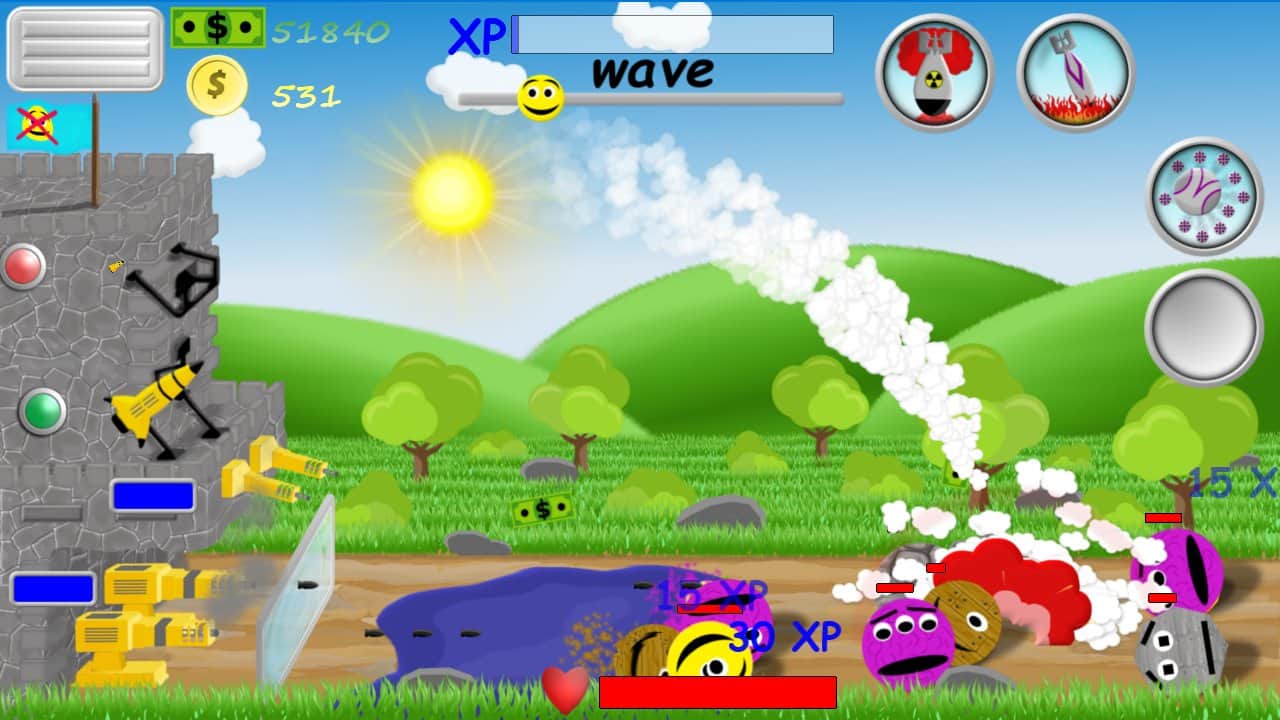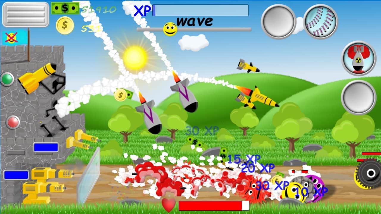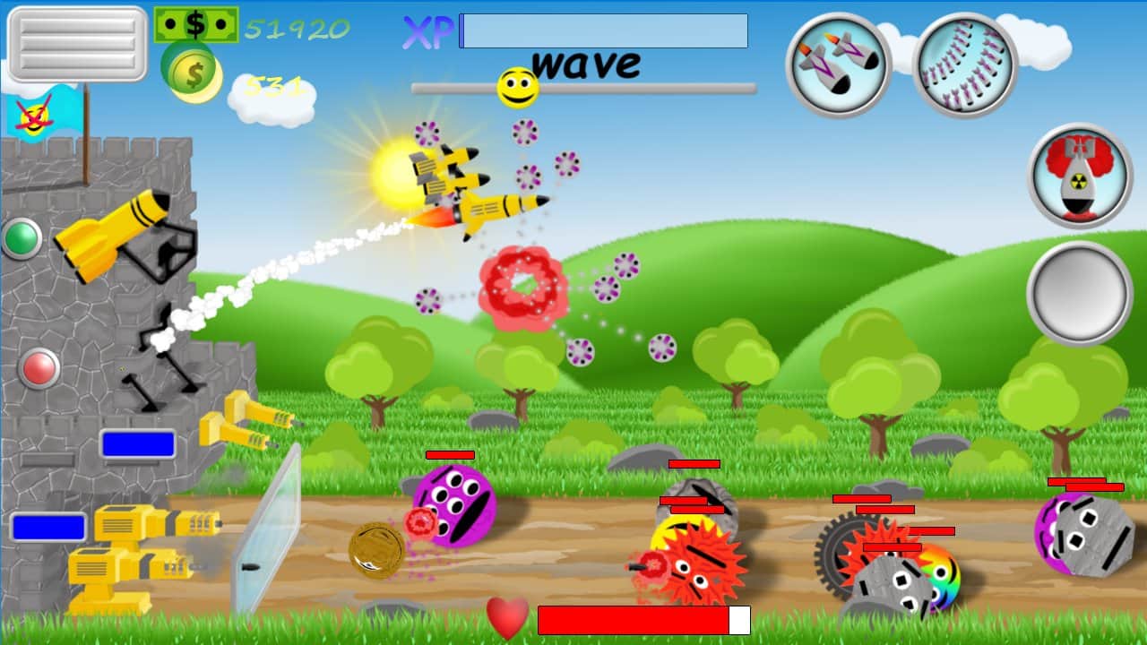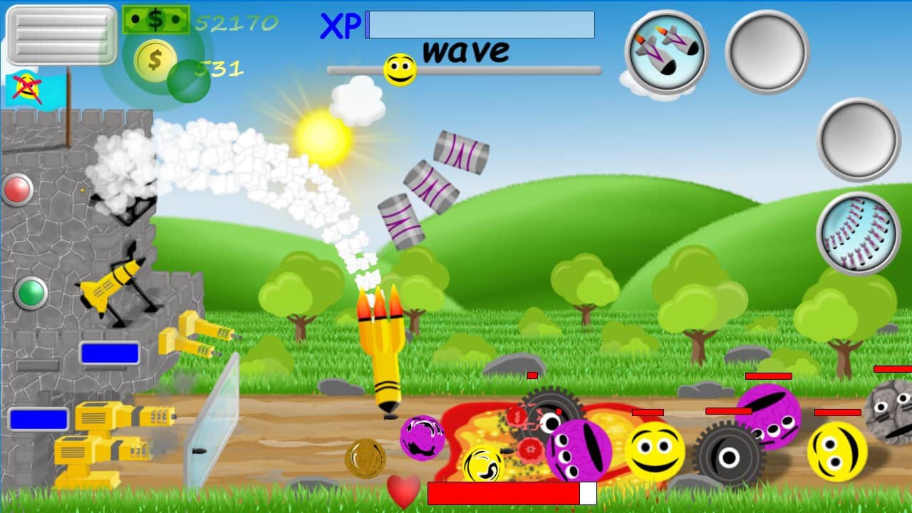 KillKamm defense lite – игра из жанра tower defense на андроид, где вашей задачей будет продержаться в игре как можно дольше. Держите оборону замка и не дайте смайликам проникнуть за его стены. Проходите увлекательные уровни, прокачивайте свои умения и улучшайте оружие. Вас будут атаковать бесконечные орды врагов и вам необходимо улучшать и открывать новые виды оружия, а также открывать авиаудары для уничтожения сразу нескольких смайликов. По окончанию каждого раунда будет проводиться подсчёт очков, поднимайтесь как можно выше в таблице лидеров и добивайтесь отличных результатов.